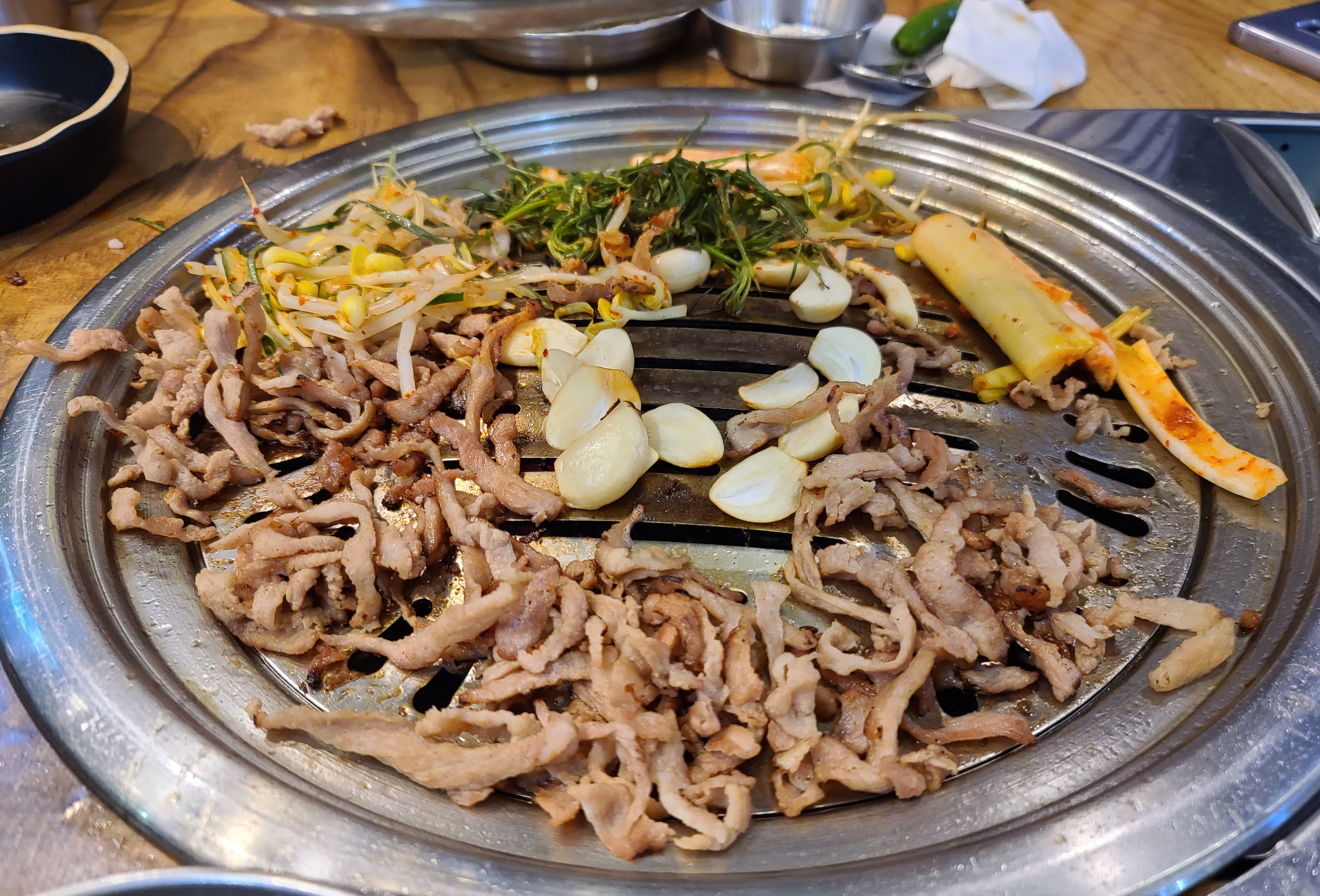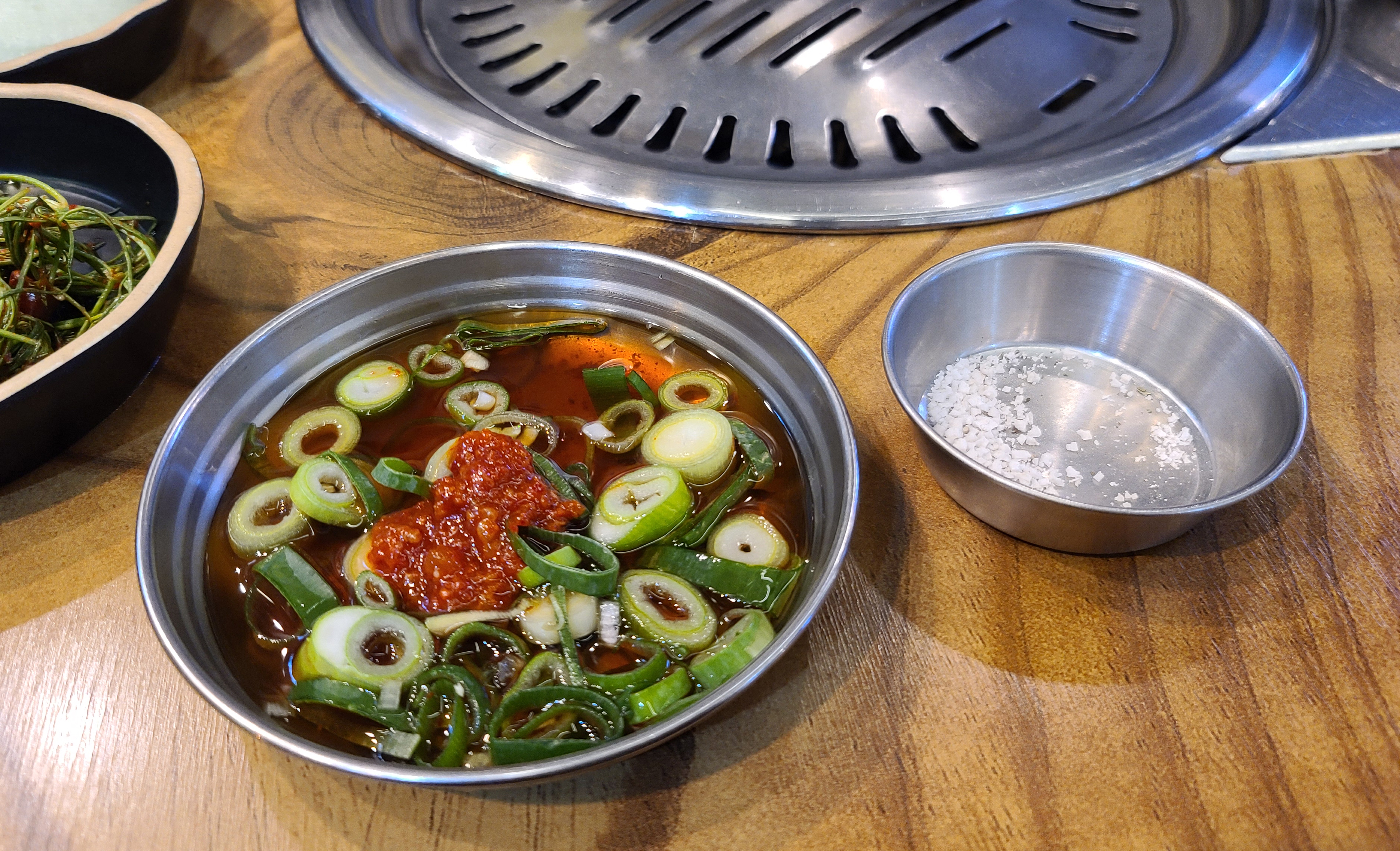 잘 구워진 항정살에 마늘과 대파장에서 파를 건져내 같이 쌈을 싸 먹으면 더없이 좋았죠. 정말 여태까지 다녀본 고깃집 중에 가장 손이 많이 가는 메뉴였고, 고기 굽는 손놀림이 아직도 잊히지 않을 정도로 놀라웠습니다.
