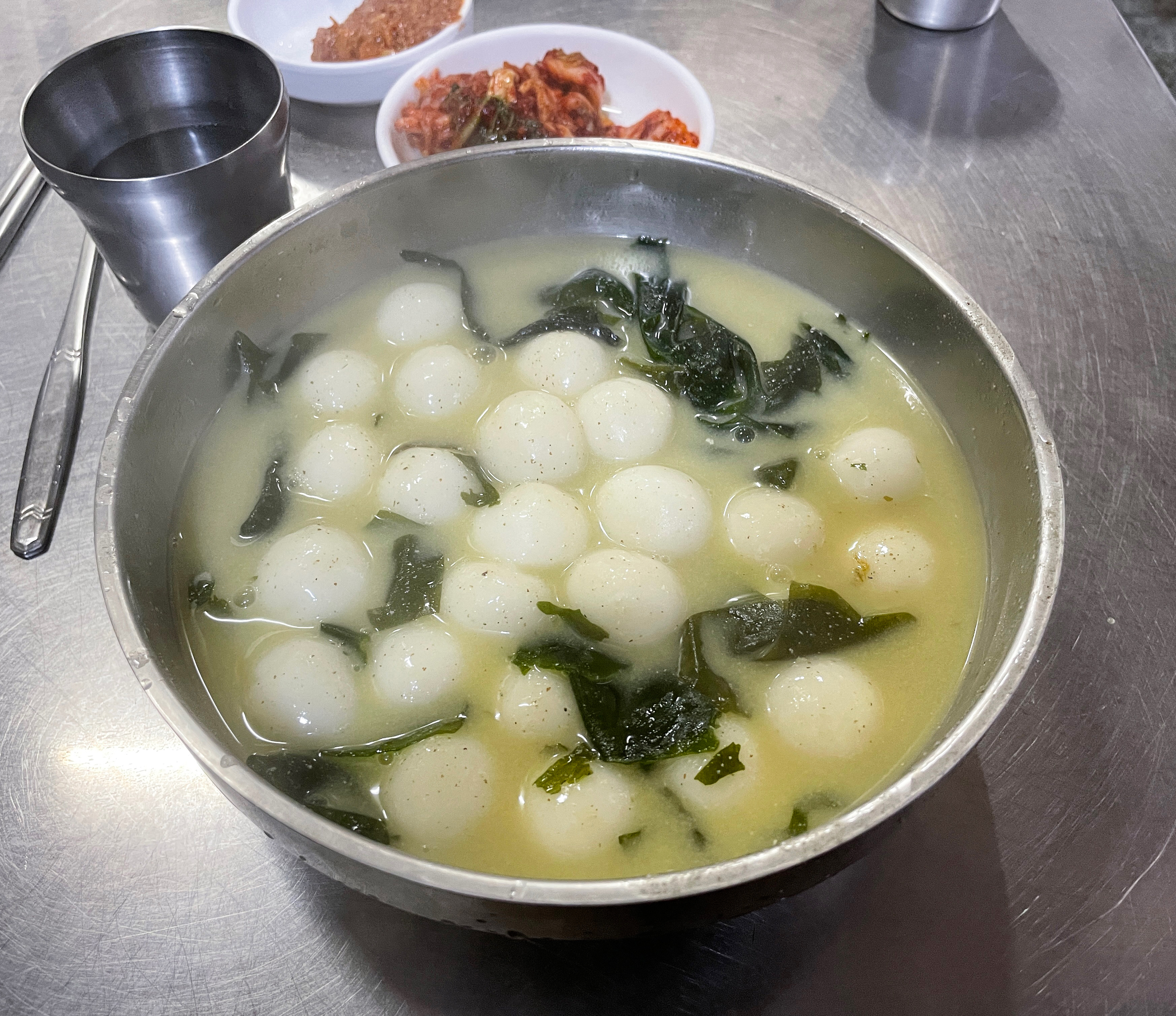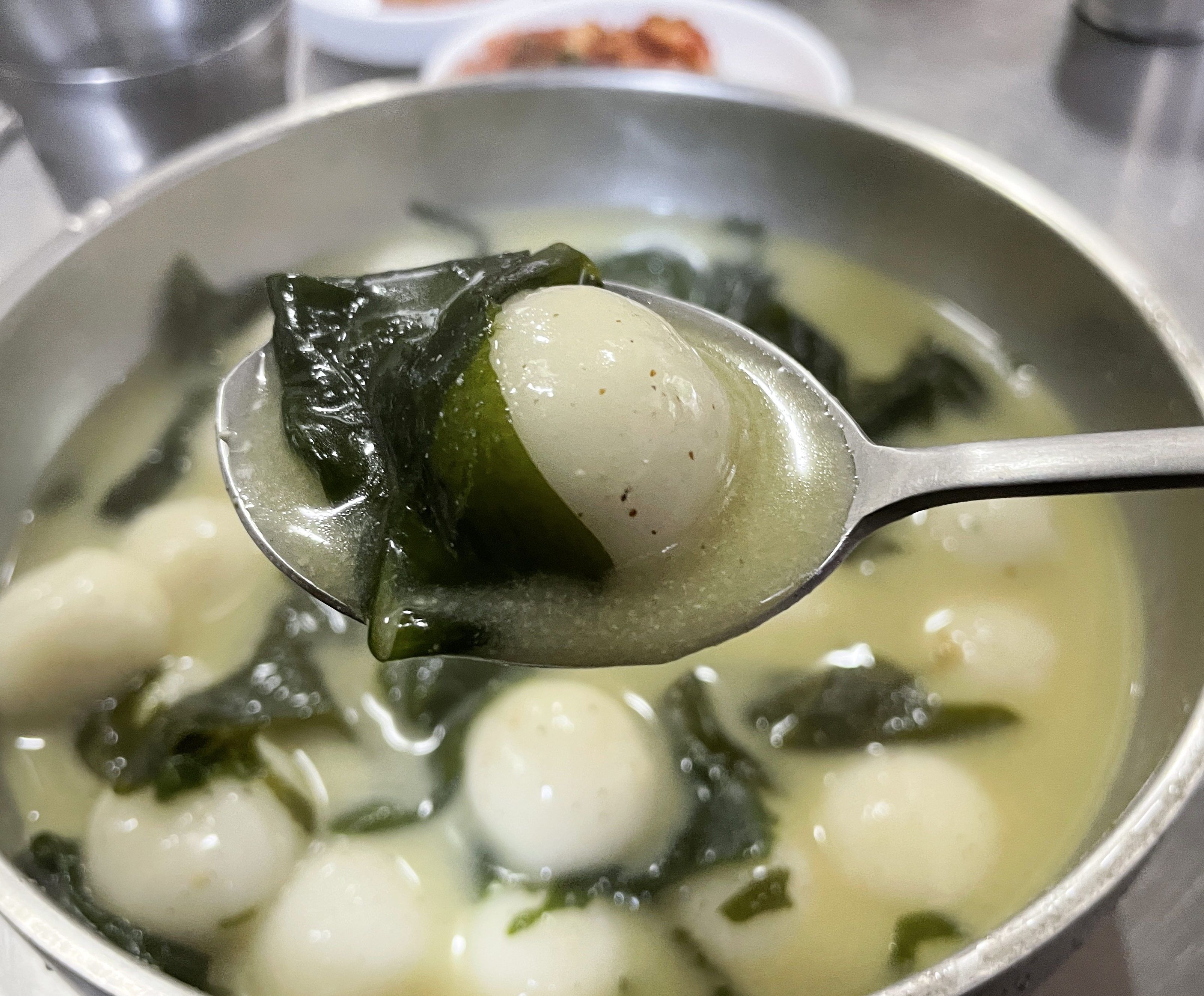 제가 먹은 서문시장의 찹쌀수제비는 들깨미역국에 옹심이가 들어간 메뉴였고, 찹쌀 옹심이는 뜨거웠지만 쫀득쫀득 마쉬멜로우 같은 식감이 재밌더라고요. 양도 제법 있어서 은근히 배불리 먹었고요.