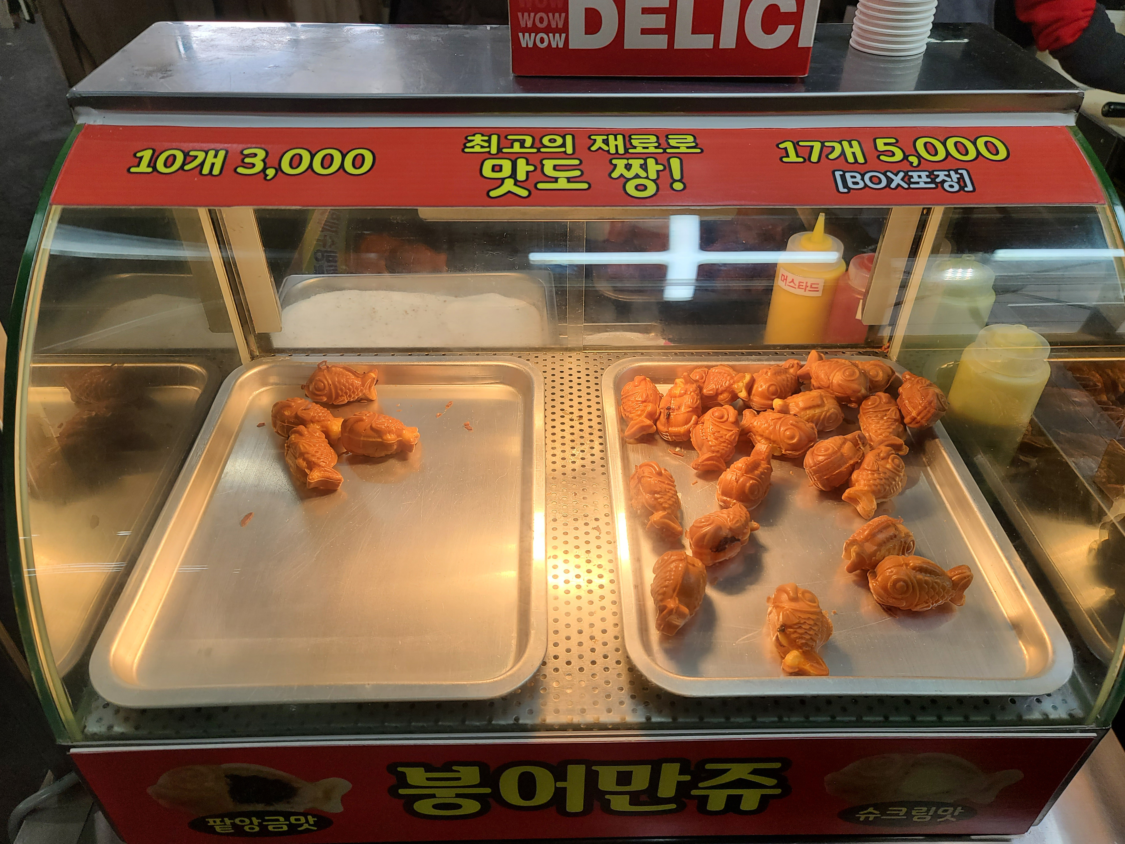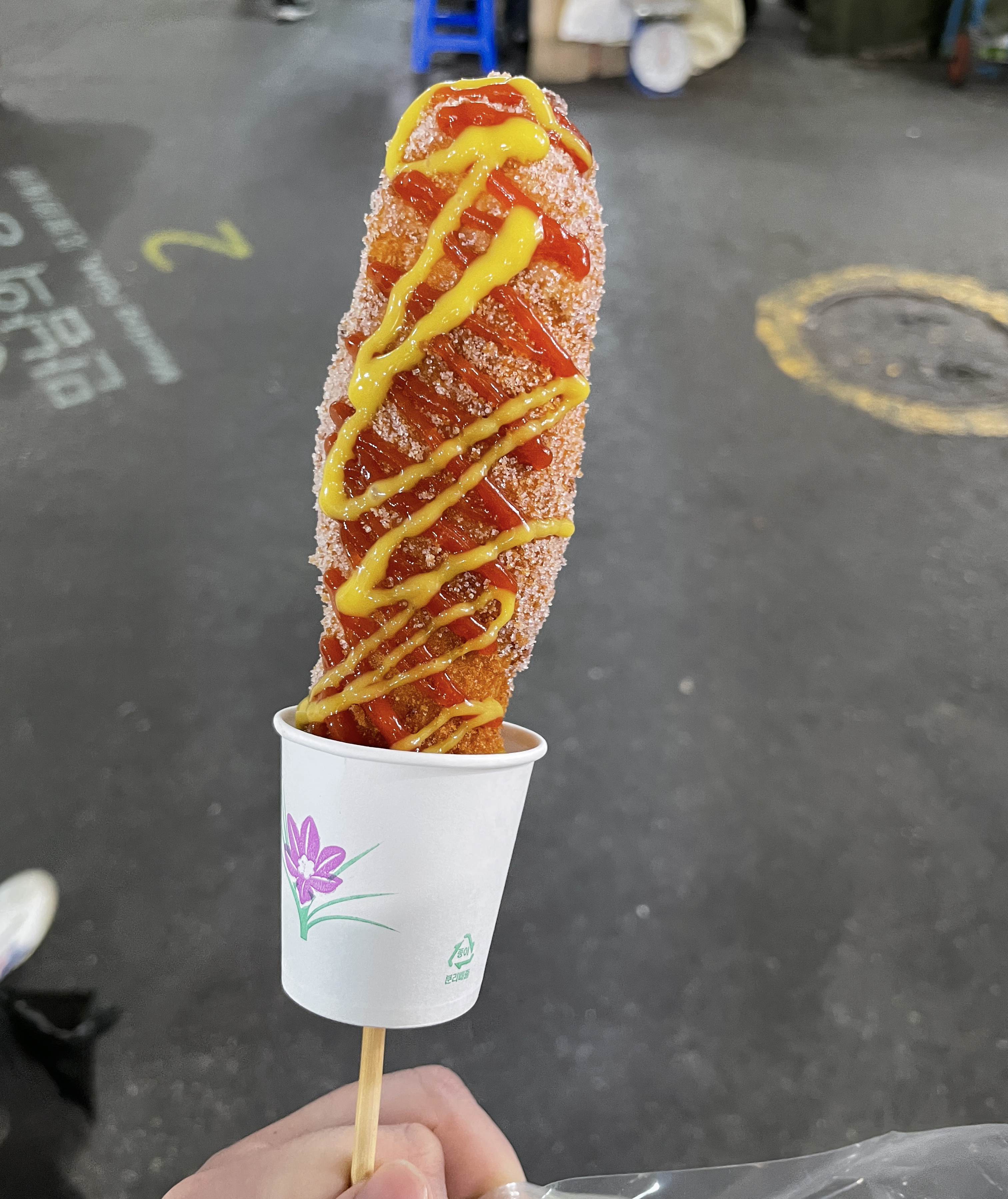수제핫도그 가격은 치즈가 들어있는 메뉴로 2,000원이었는데 손에 케첩과 머스타드가 흐르지 않도록 소주컵까지 받쳐서 주는 게 센스가 넘치더라고요. 핫도그 반죽도 맛있었고, 속에 들어있는 치즈와 소시지도 꽤 커서 가격대비 괜찮은 간식이었습니다. 원래는 돈까스버거(?)를 도전해보고 싶었는데 이 날은 판매하지 않는다고 들어서 다른 간식들로 배를 채웠죠. 서문시장을 더 둘러보고 싶었는데 이 날 일정이 있어서 더 돌아보지는 않고 집으로 돌아왔습니다.