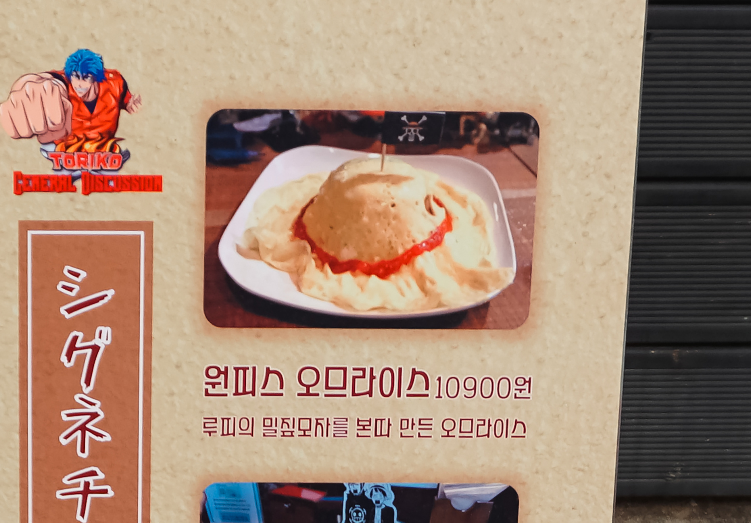 야키소바도 맛있었지만, 옆테이블에서 먹던 원피스 오므라이스도 꽤 괜찮아 보이더라고요. 만화 원피스의 주인공이 쓰던 밀짚모자를 떠올리게 하는 메뉴였는데, 아이디어가 괜찮더라고요. 가까이 살았다면 조금 더 다양한 메뉴들을 먹어봤을 텐데, 많이 못 먹어서 아쉬웠습니다.