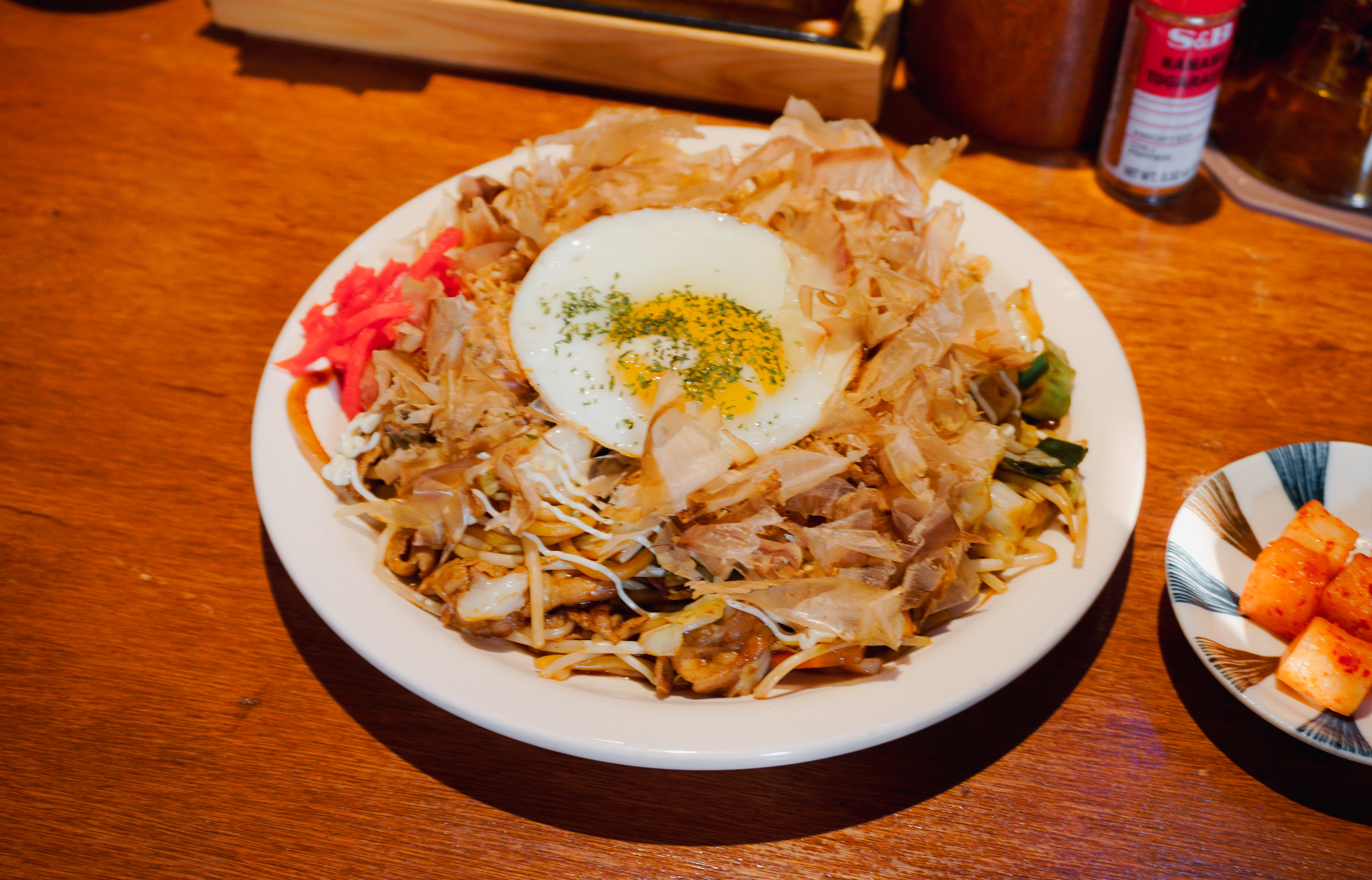 제가 주문한 야끼소바가 나왔습니다. 야끼소바는 볶음면이었는데 오코노미야키와 비슷한 메뉴라고 보시면 될 것 같습니다. 가쓰오부시와 달걀프라이가 올라가 고소하면서도 향이 좋았고, 해산물과 함께 볶아내 감칠맛이 좋았습니다.