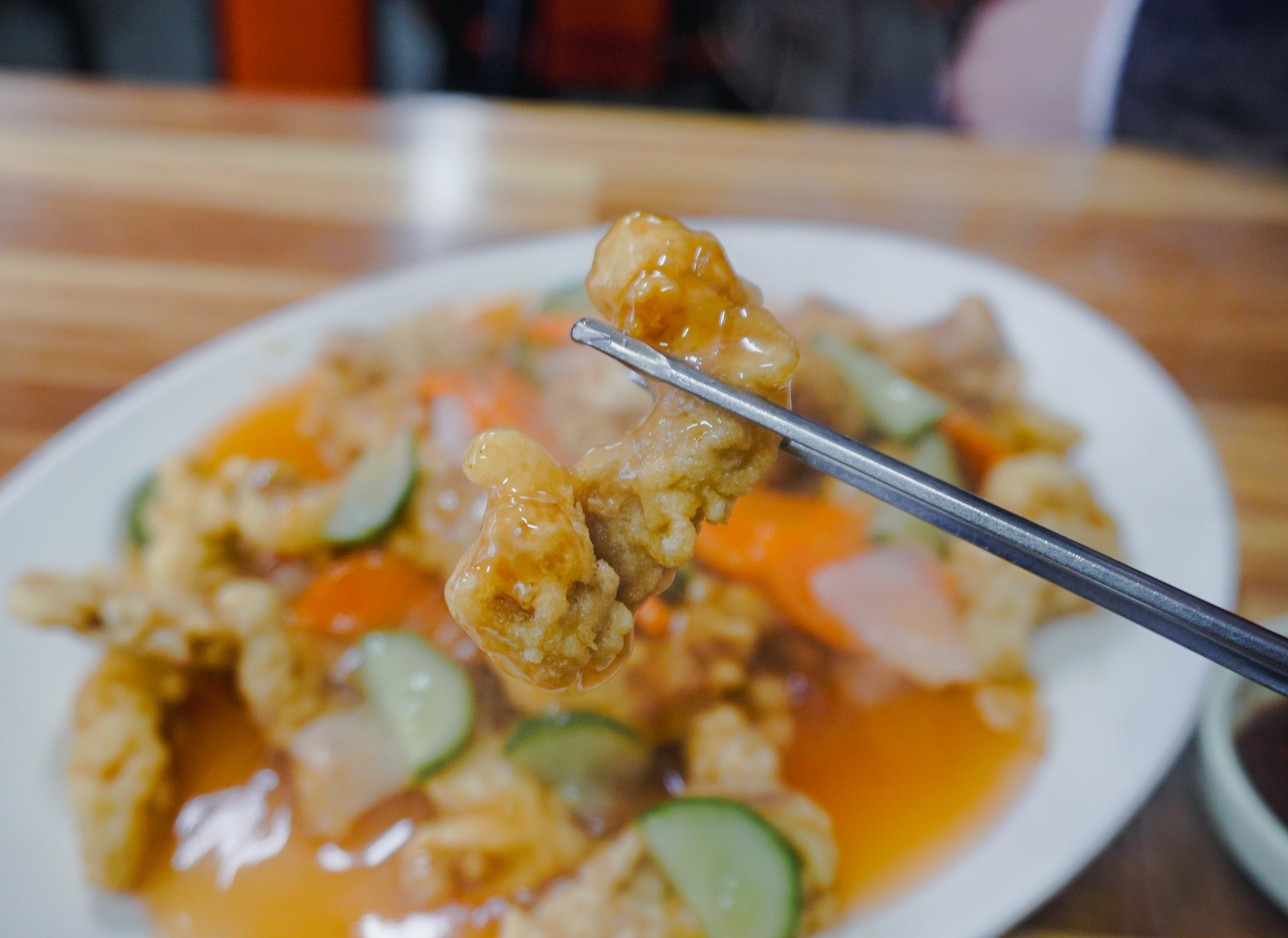 먼저, 아리랑반점의 탕수육 부터 살펴보겠습니다. 탕수육은 옛날 중국집 탕수육이었는데, 확실히 이런 종류의 탕수육은 찍먹보다는 부먹으로 먹는게 맛있는 것 같더라고요. 촉촉한 소스가 잘 스며든 탕수육은 맛이 좋았고, 양도 꽤 넉넉해서 배불리 먹을 수 있었습니다.