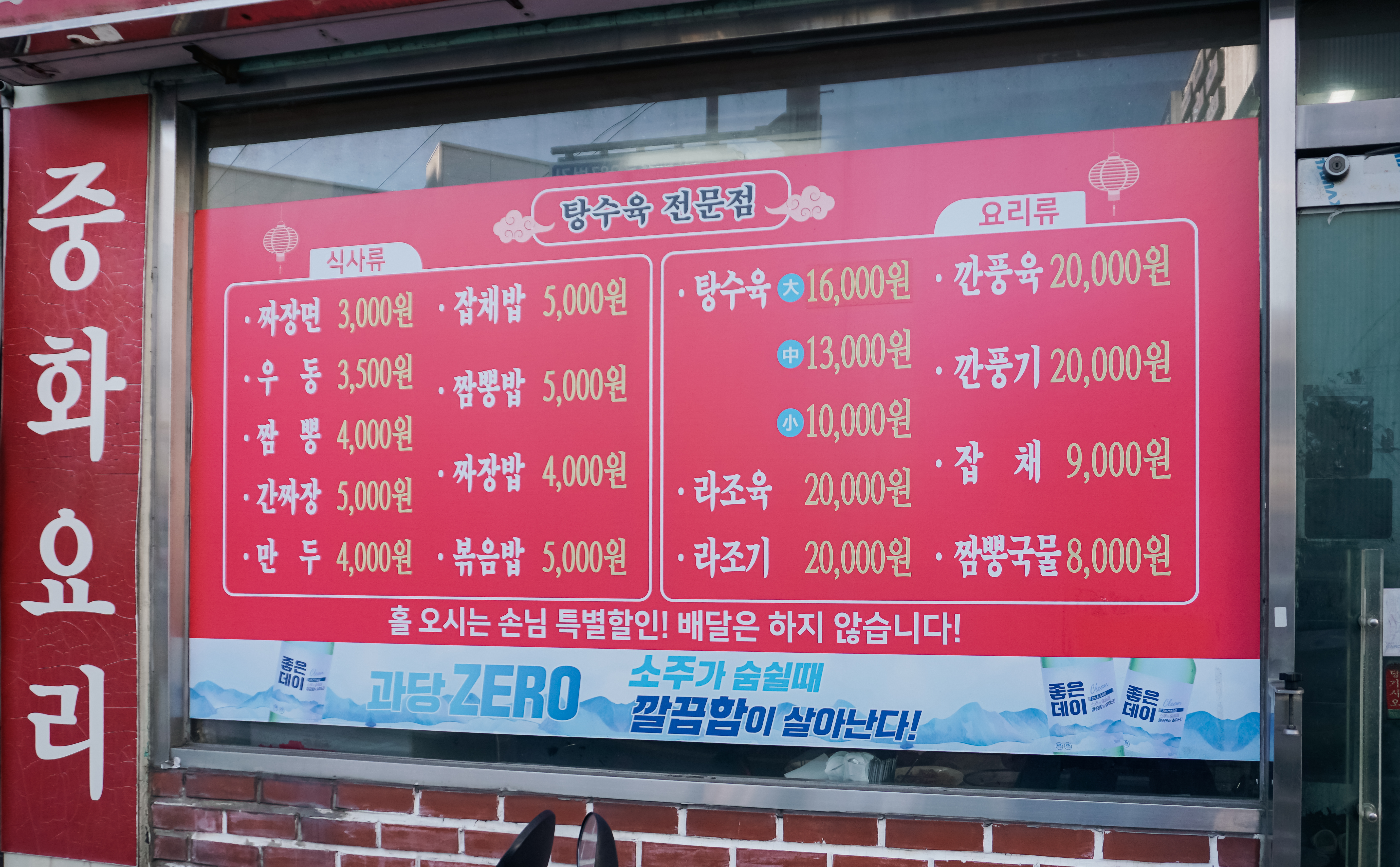 아리랑반점은 부산 연제구 거제1동 1463-62, 1층에 위치한 가게입니다. 영업시간은 매일 11:00~19:30 까지였습니다. 가게 밖에 메뉴판이 있어서 미리 메뉴를 정하고 식사하러 들어갈 수 있어서 좋았습니다.