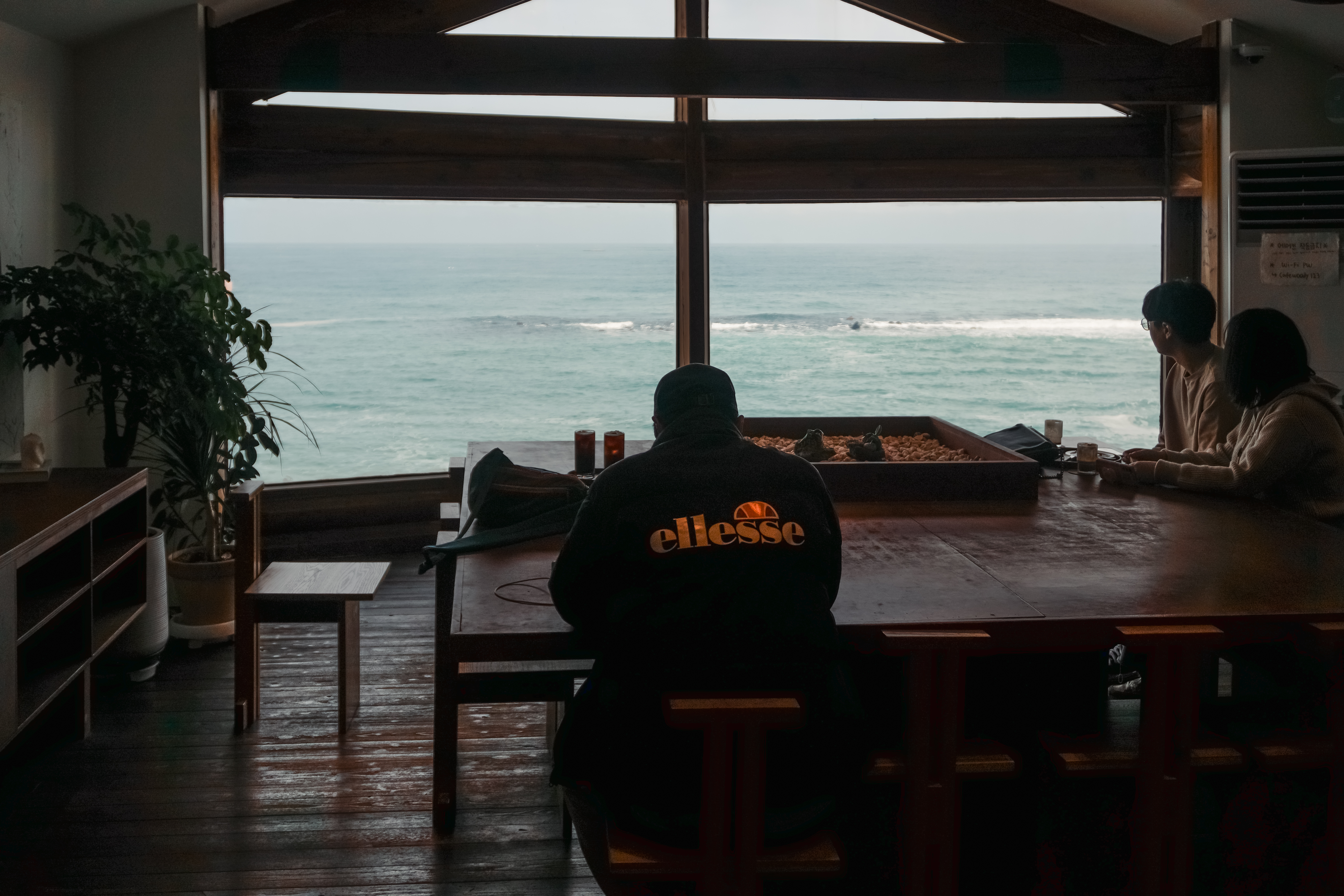카페우디 2층은 오션뷰가 참 좋았는데, 대신에 테이블은 공용으로 사용하는 커다란 테이블로 구성되어 있었습니다. 그밖에 자리는 깔끔한 분위기가 일반적인 카페와 같았습니다.