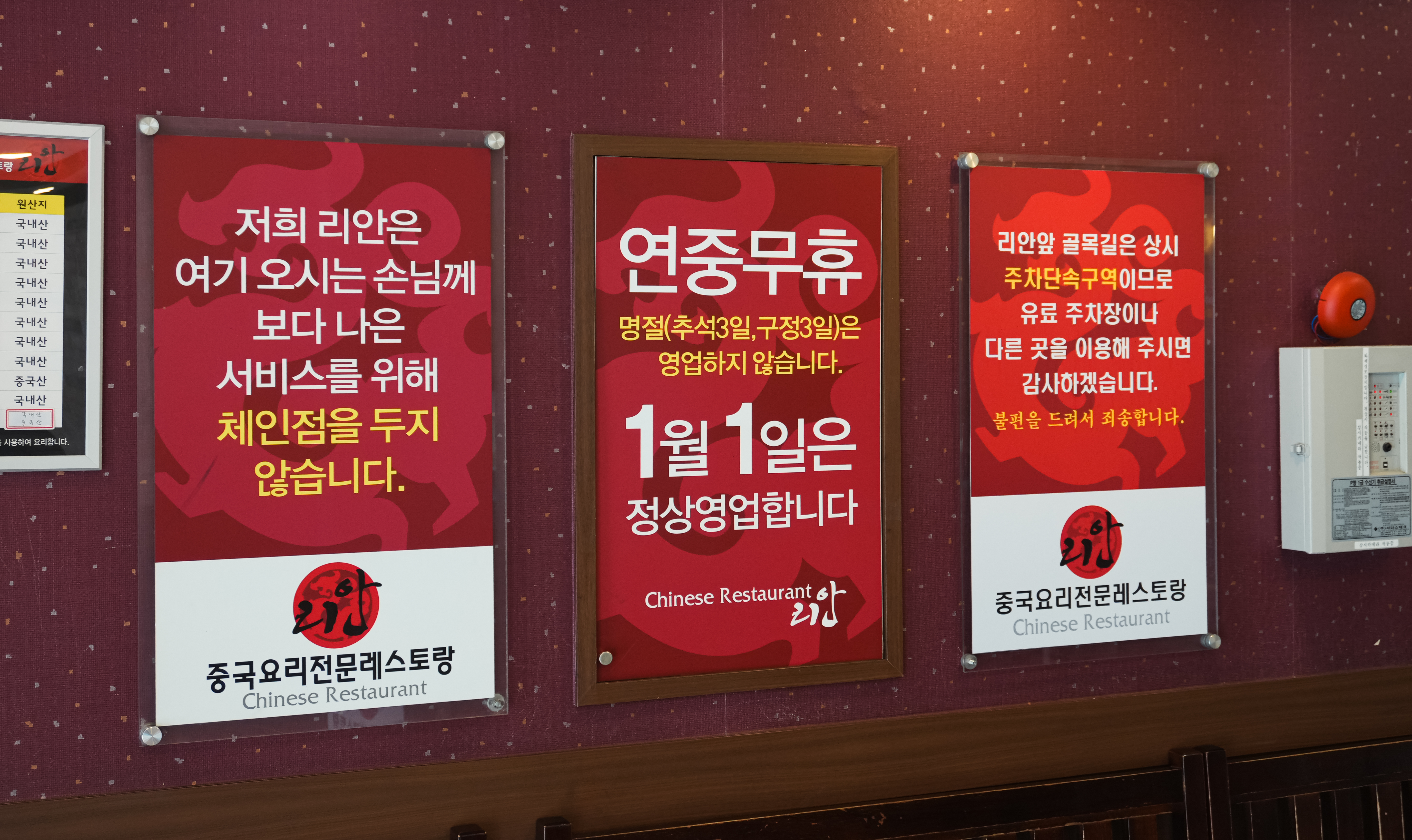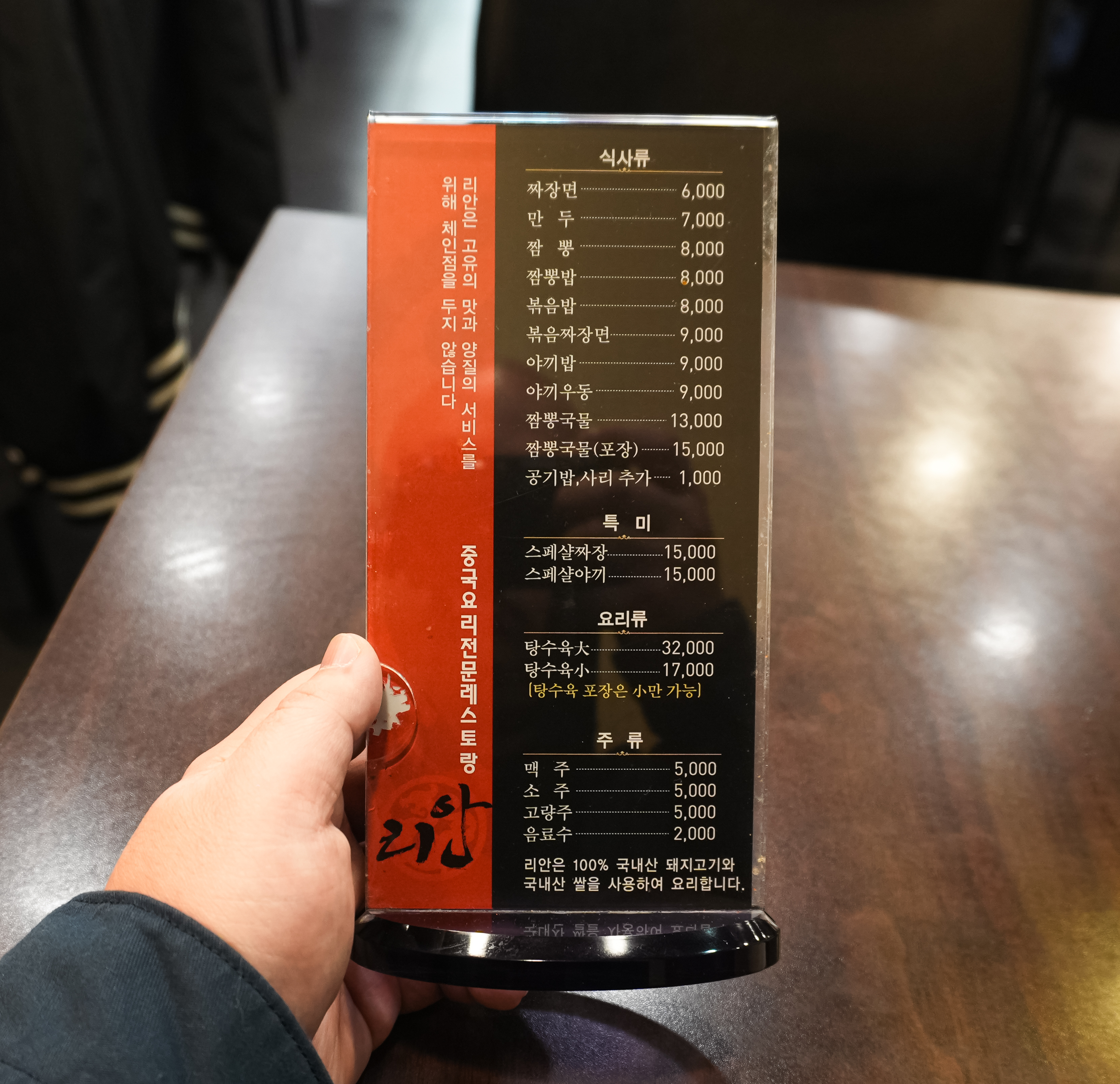 가게에 들어가면 대기실이 있어서 명단에 이름을 적어두고 대기를 할 수 있었고, 이곳에서 인기 있는 메뉴인 '스페셜야끼'라는 메뉴와 더불어 탕수육을 강조하고 있었습니다. 그밖에 리안에서 사용하는 식재료의 원산지 표기를 하고 있었는데, 대부분 국내산 재료를 이용해 만드는 것 같았습니다.