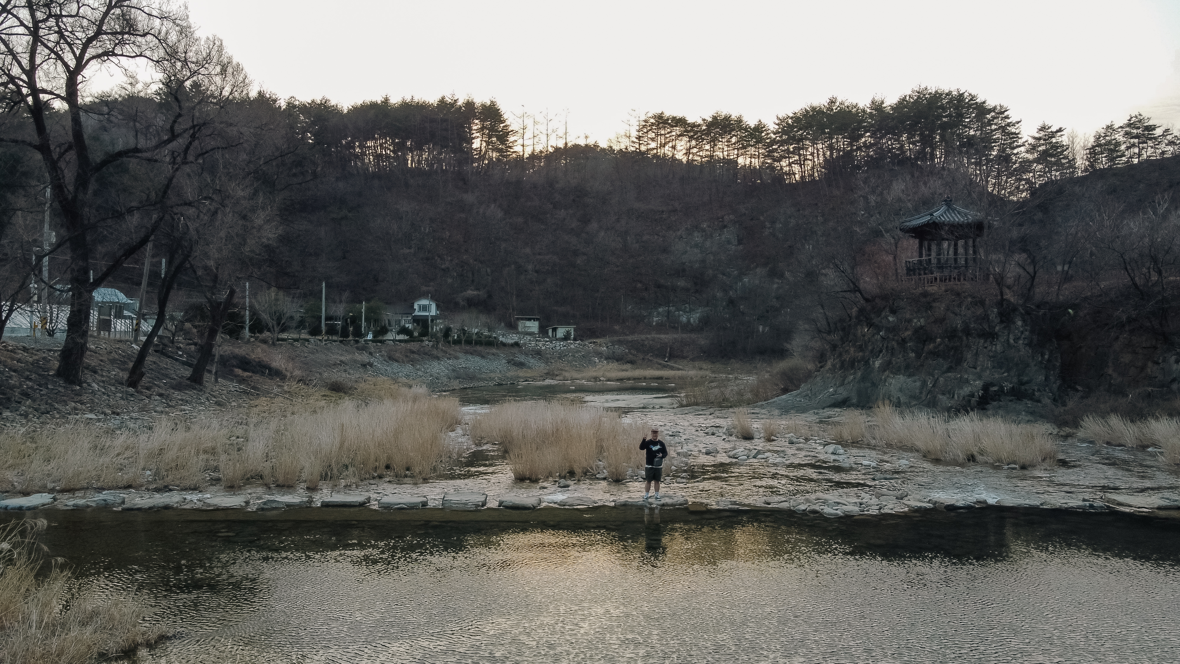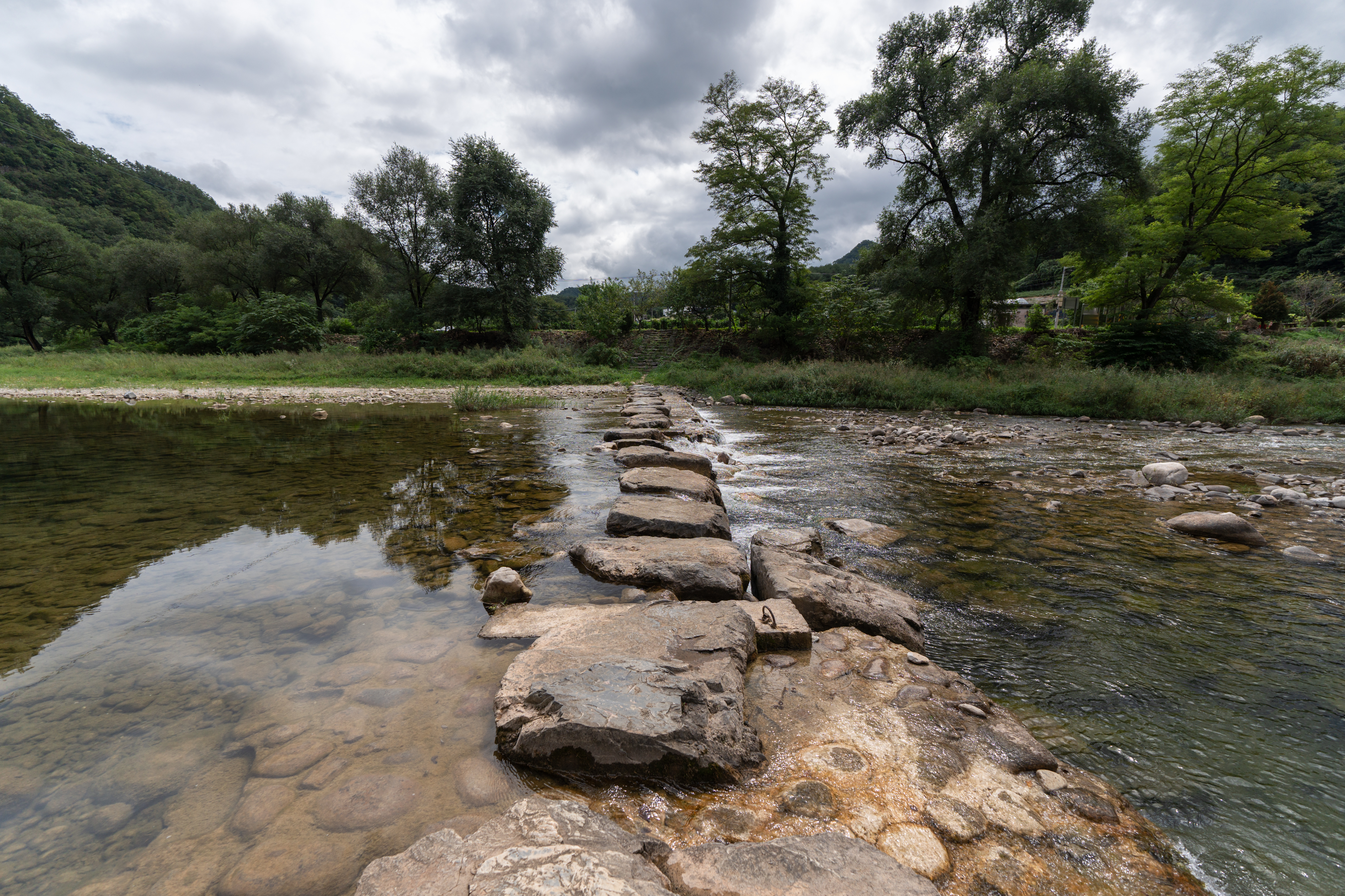 청보리밭을 가는 길은 위와 같이 징검다리를 건너야 하는데요. 유속이 살짝 있어서 겁내시는 분도 있을 것 같습니다. 하지만 징검다리로 쓰이는 돌들이 꽤 크고 넓어서 미끄러지지만 않는다면 그럭저럭 다닐만했습니다.
