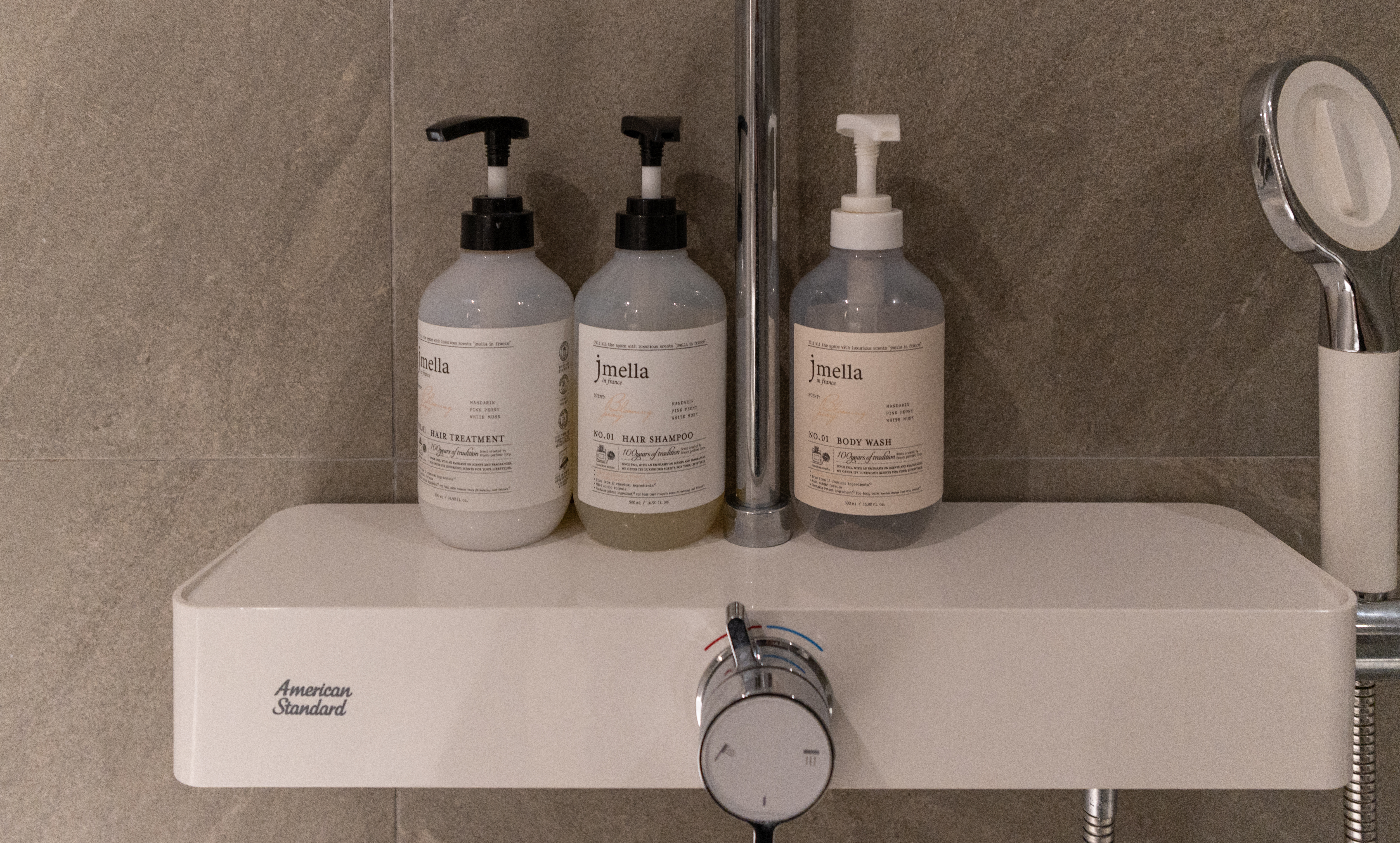 아뮤즈 호텔의 욕실은 위와같이 생겼습니다. 세면대에 핸드워시와 비누가 있었고, 트리트먼트, 샴푸, 바디워시, 수건이 있었습니다. 욕실도 전체적으로 분위기가 깔끔하고 좋았습니다.