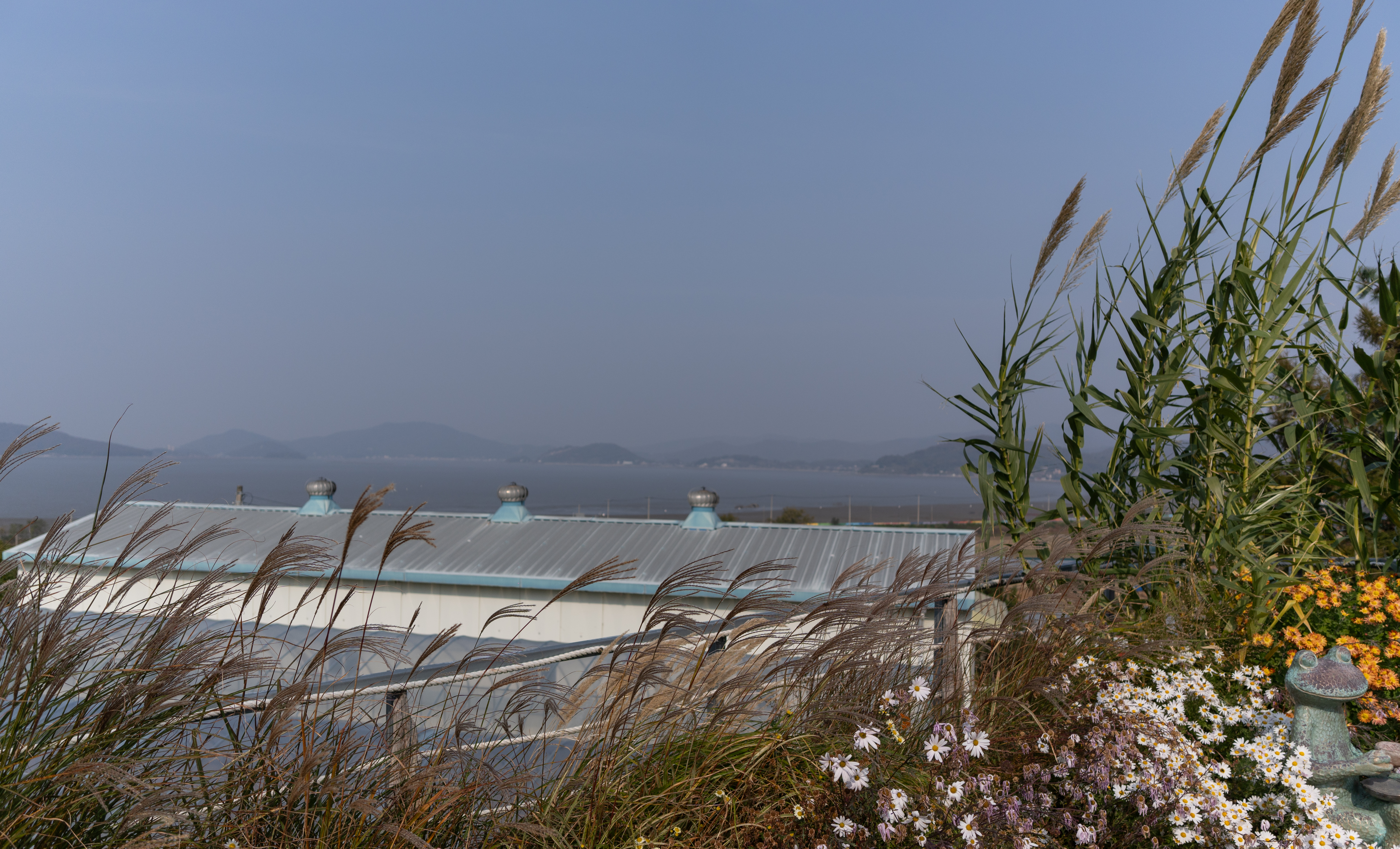 야생화뜰 카페의 정원은 이름처럼 야생화들이 피어있어 소박하면서도 아름답게 잘 꾸며져 있었고, 언덕에 위치한 카페여서 그런지 강화 바다가 멀리 내려다보이기도 하더라고요.