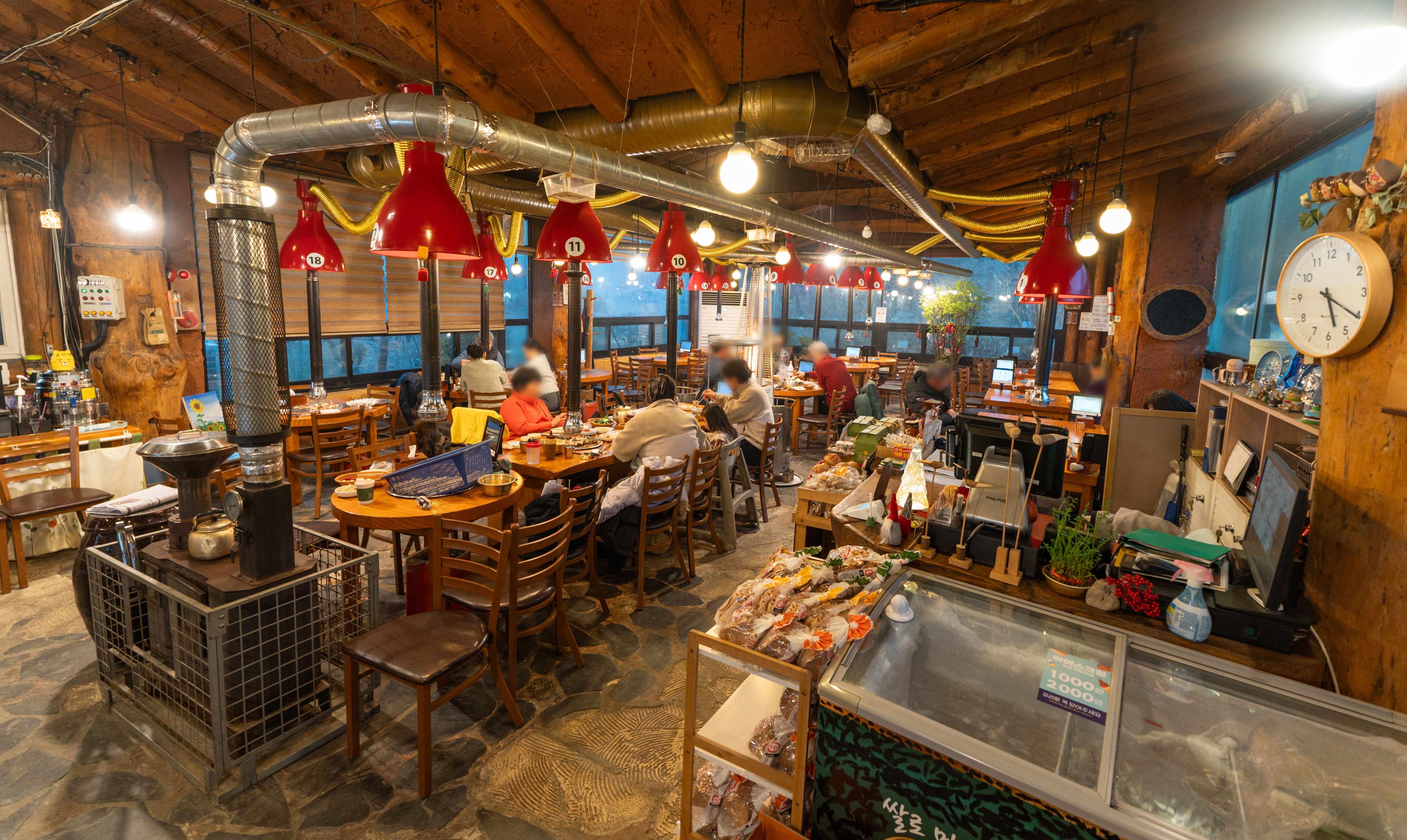 하남 가나안덕 내부는 위와 같이 생겼습니다. 가게에는 동그란 테이블이 많이 있었는데, 일부는 사각형 테이블도 있더라고요. 저희는 사각 테이블로 이동하여 식사했습니다.
