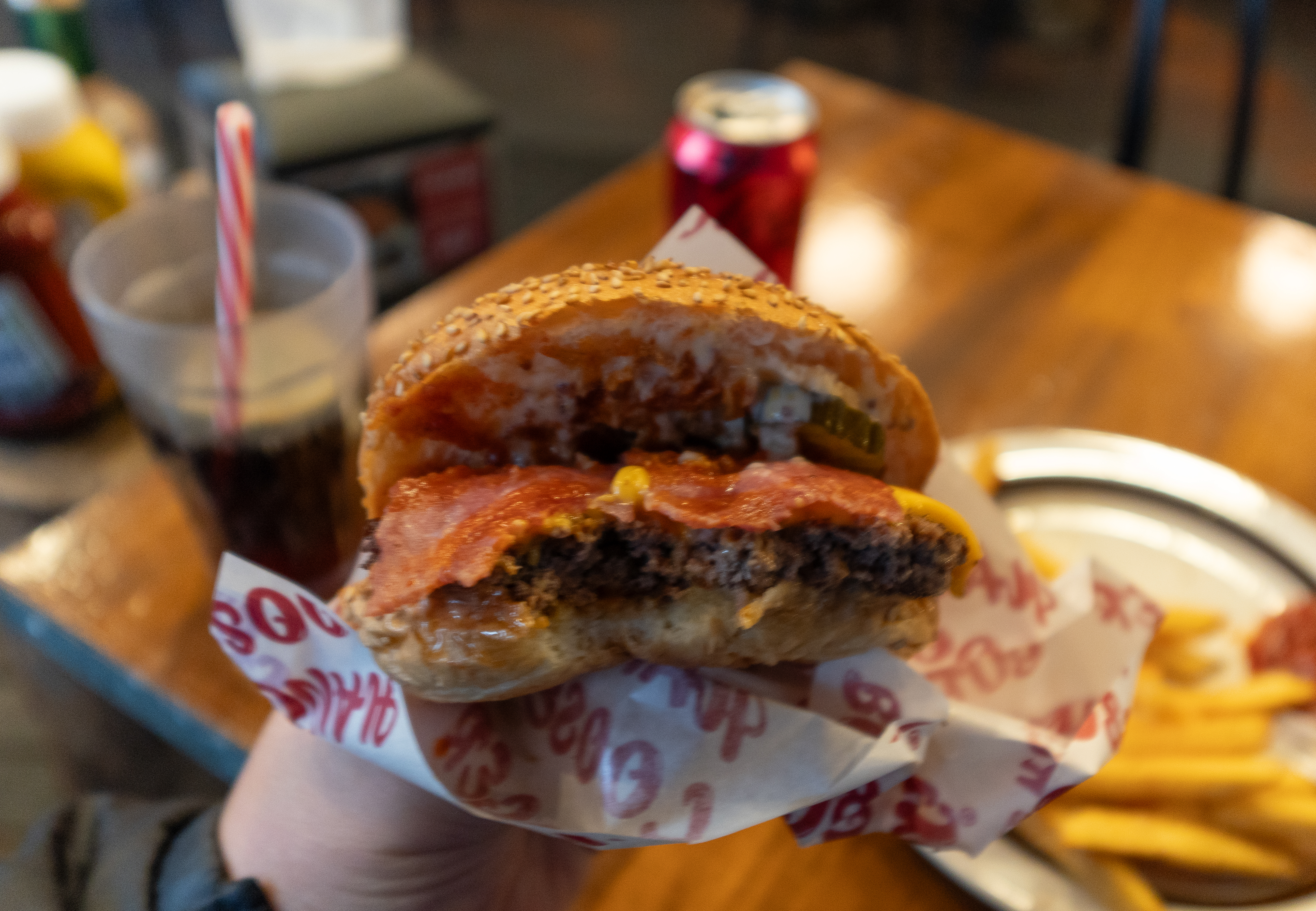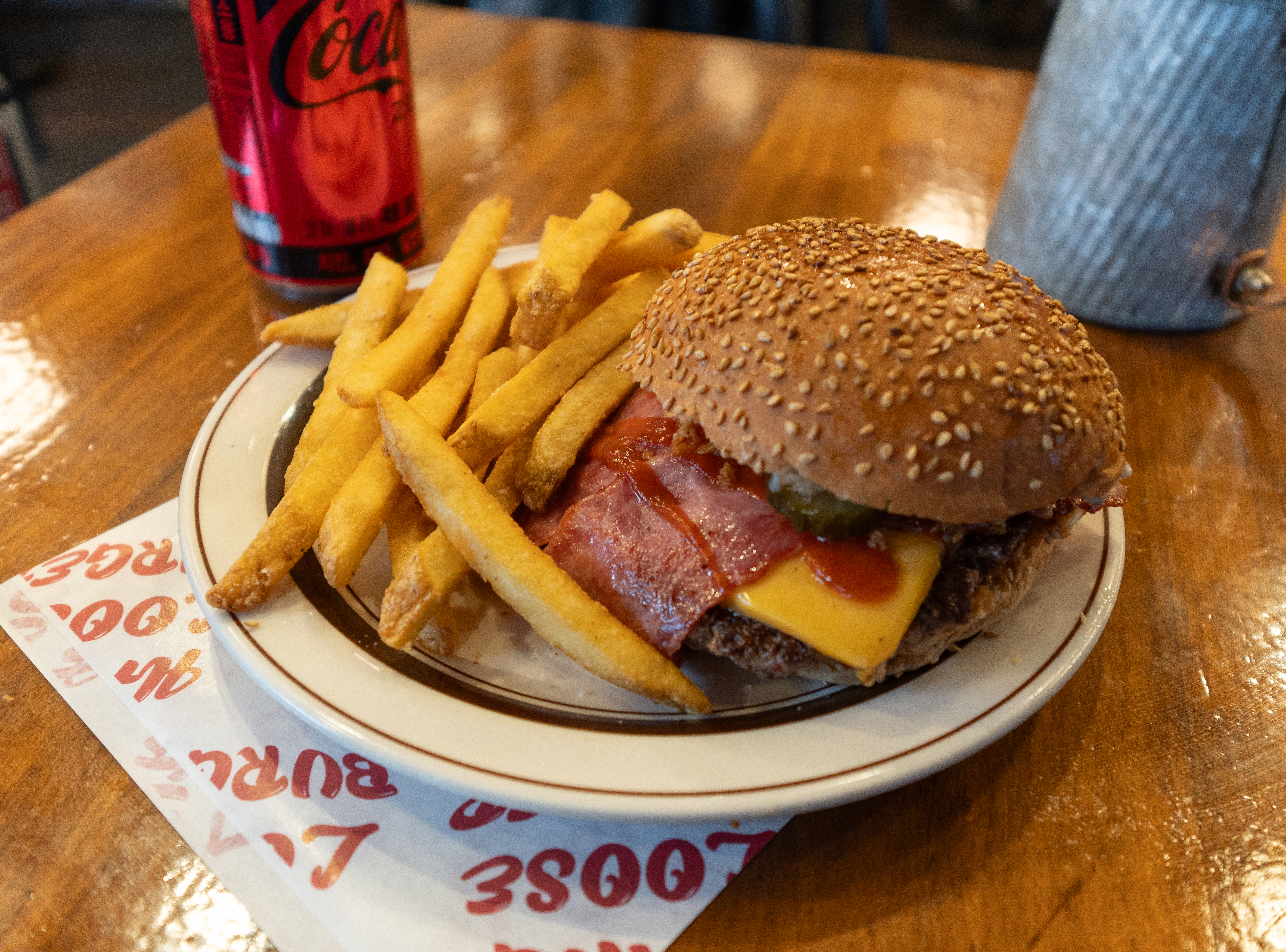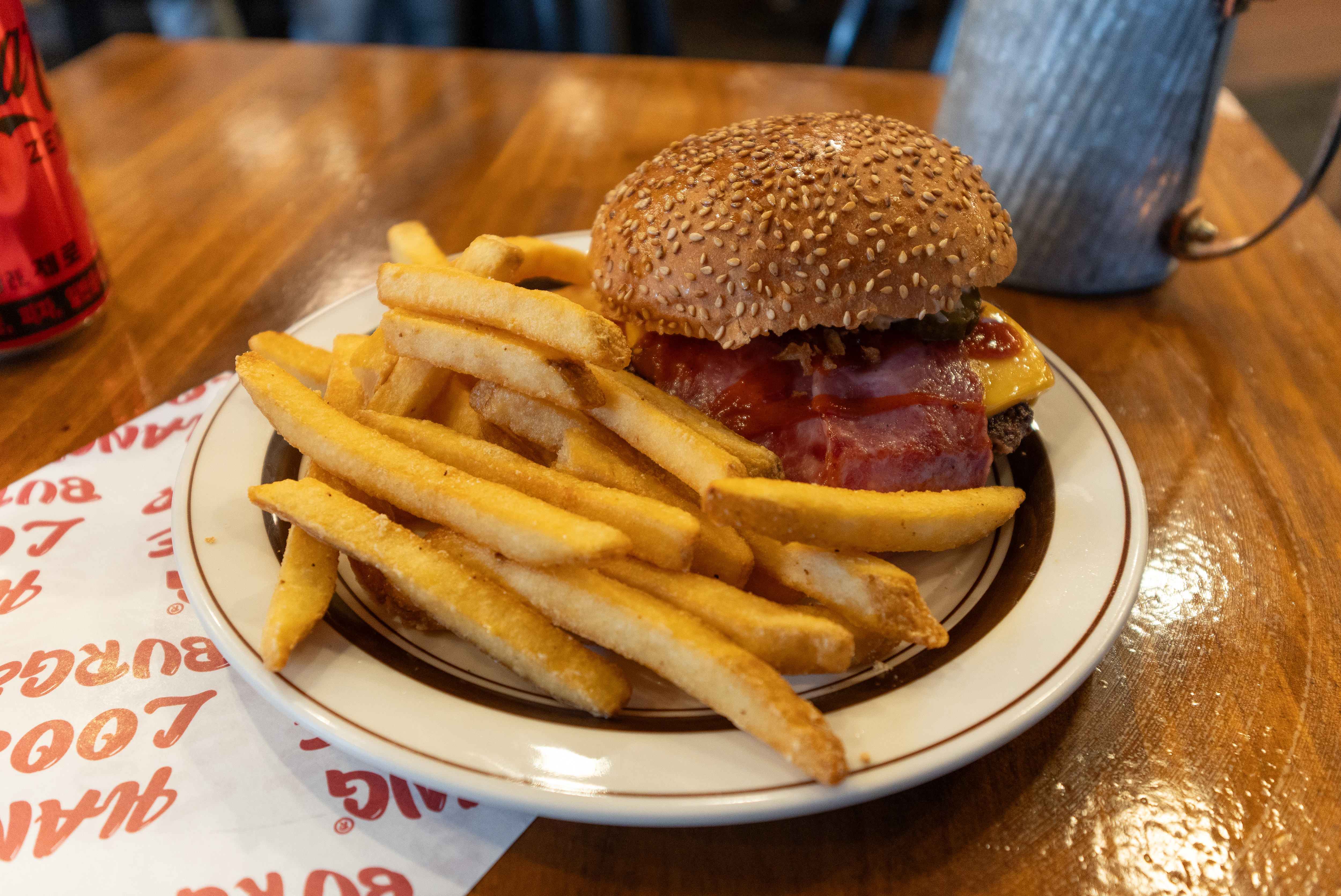 행루즈버거의 베이컨버거 세트가 나왔습니다. 베이컨버거는 100% 소고기 패티와 베이컨, 아메리칸치즈, 크리스피어니언피클, 홀그레인핫소스가 들어간 햄버거였습니다.