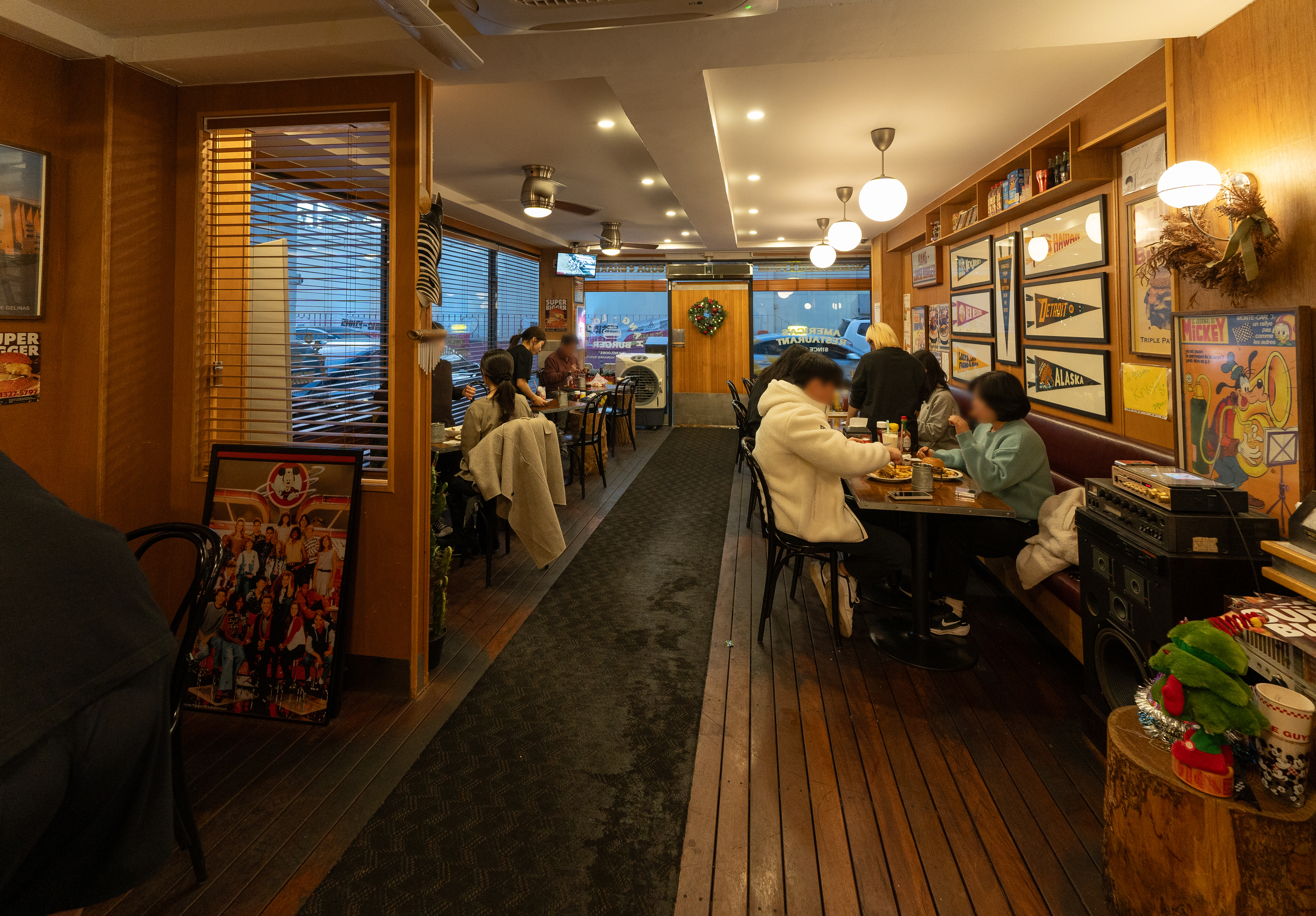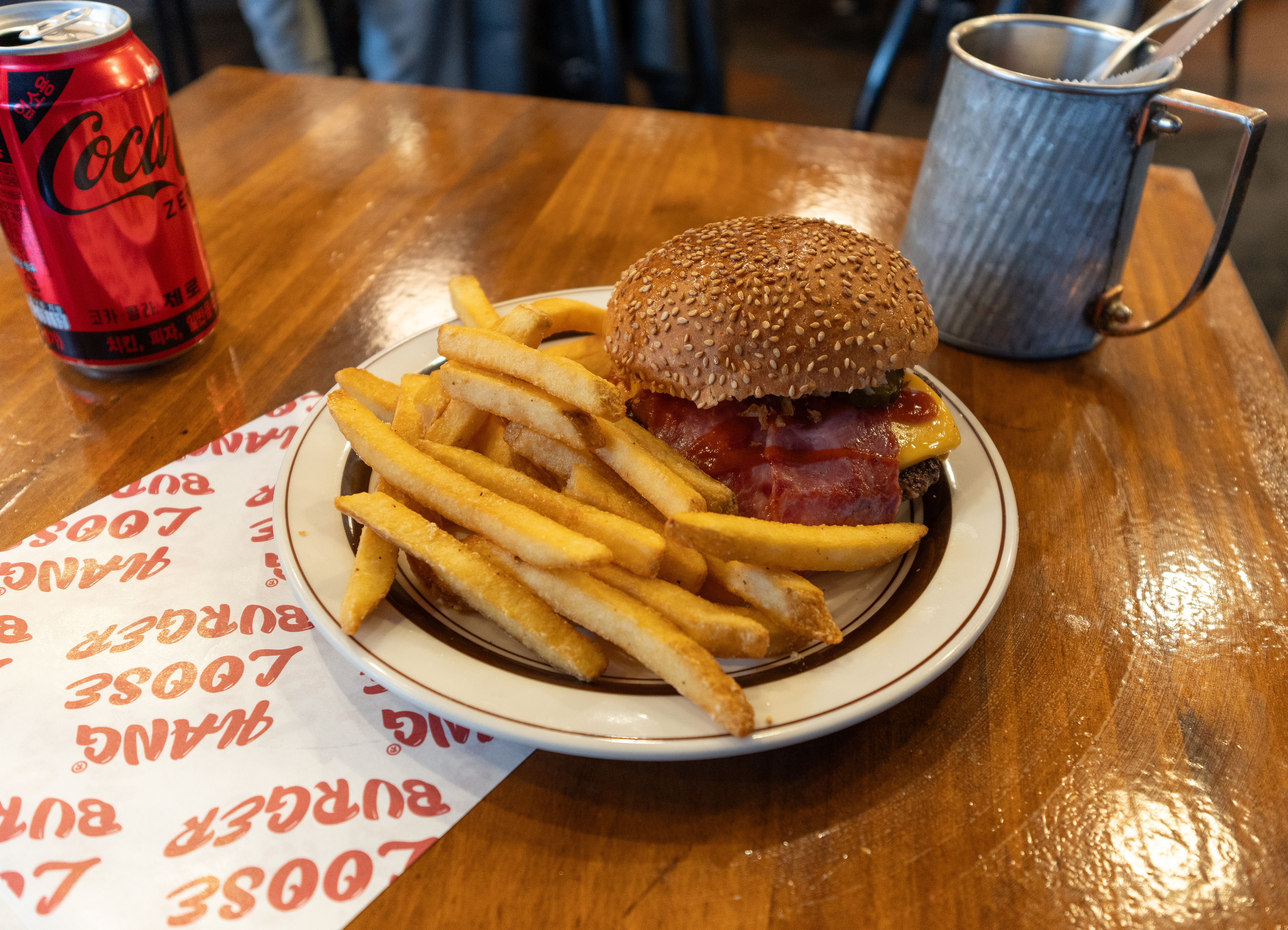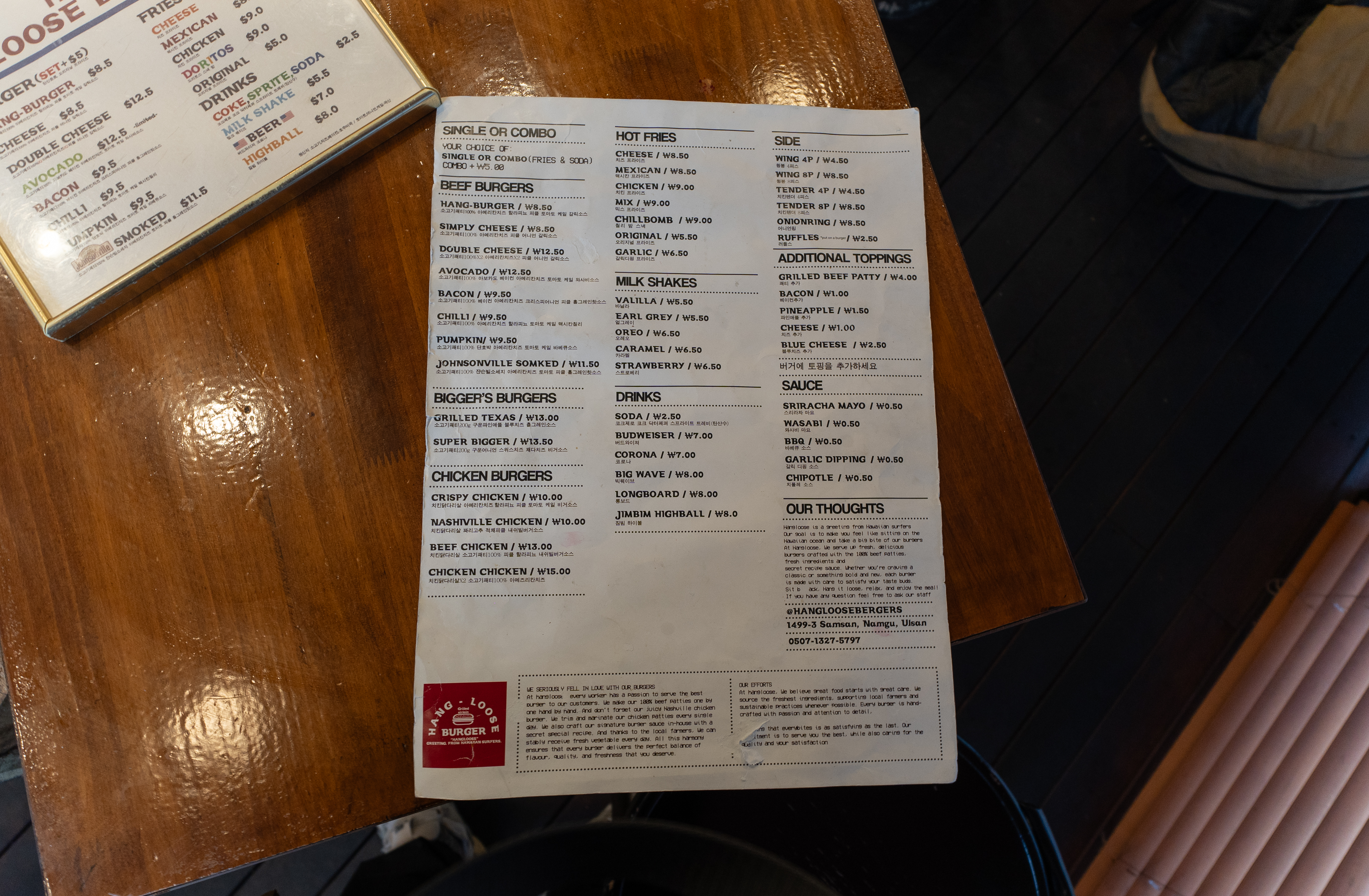 행루즈버거는 울산 남구 삼산동 1499-3, 1층 에 위치해 있었습니다. 행루즈버거의 내부는 나무 마루로 되어있었고, 곳곳에 미국 느낌이 물씬 풍겨지는 소품들을 배치해 마치 미국에 온듯한 느낌을 느껴지게 해주고 있었습니다.