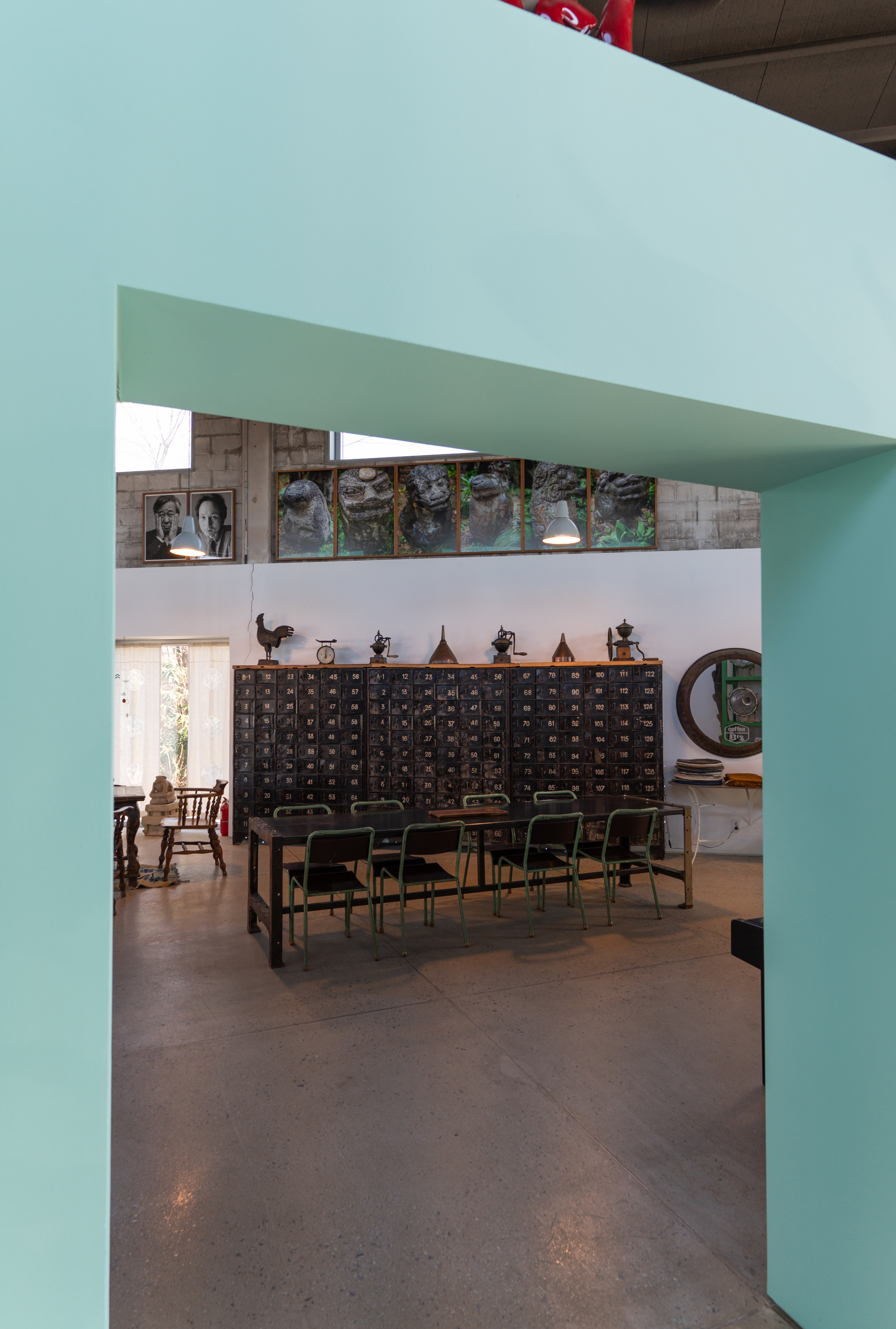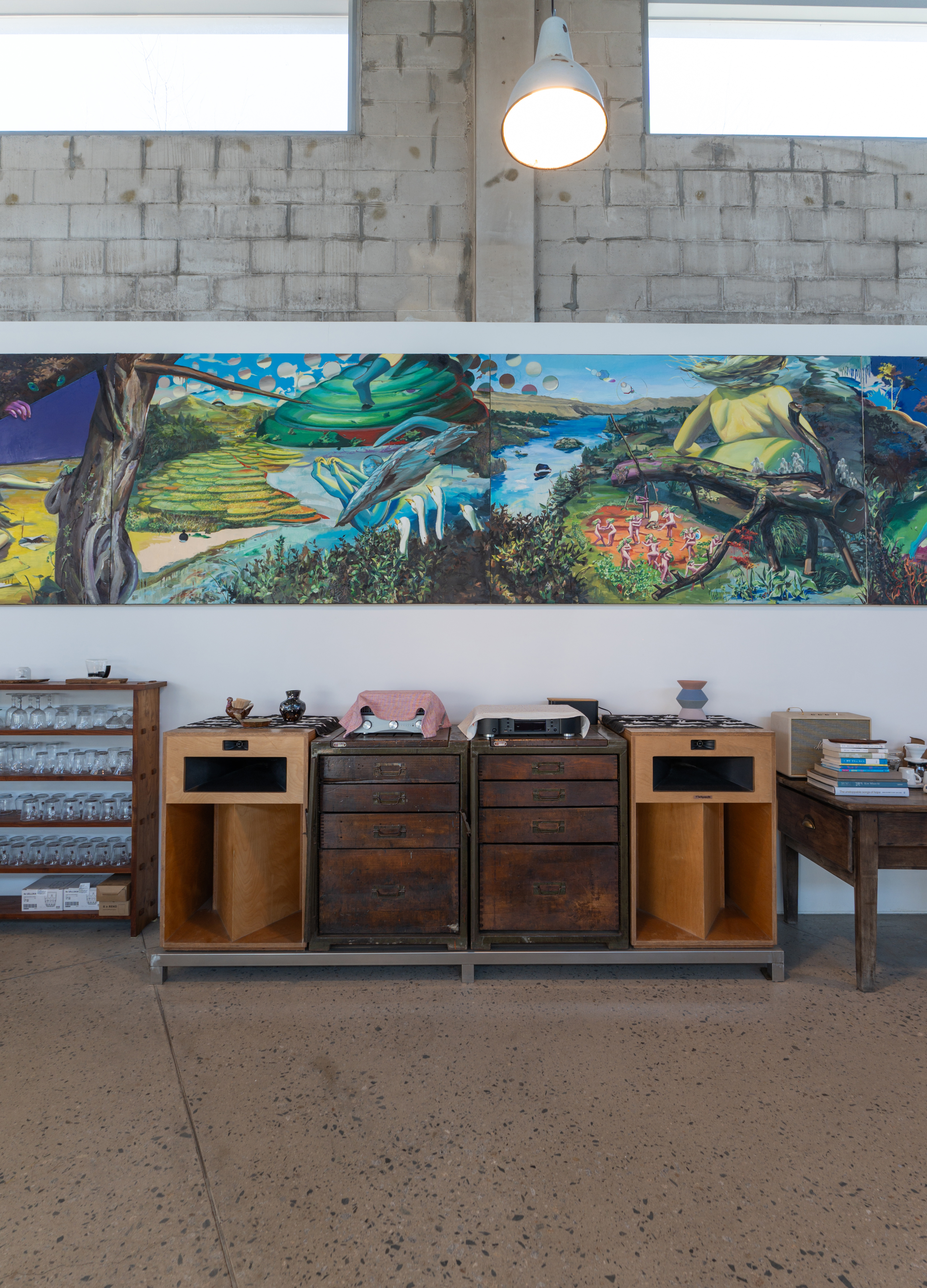 그밖에 100평 규모의 이 카페에는 그 간 황진 작가가 모아온 수집품들과 미술작품들을 만날 수 있었습니다. 빈티지한 가구들과 스피커 그밖에 공간을 채우고 있는 다양한 작품들을 만날 수 있었습니다. 카페 내부에서도 황진 작가의 수집품과 그가 직접 제작한 테이블도 만날 수 있었습니다.