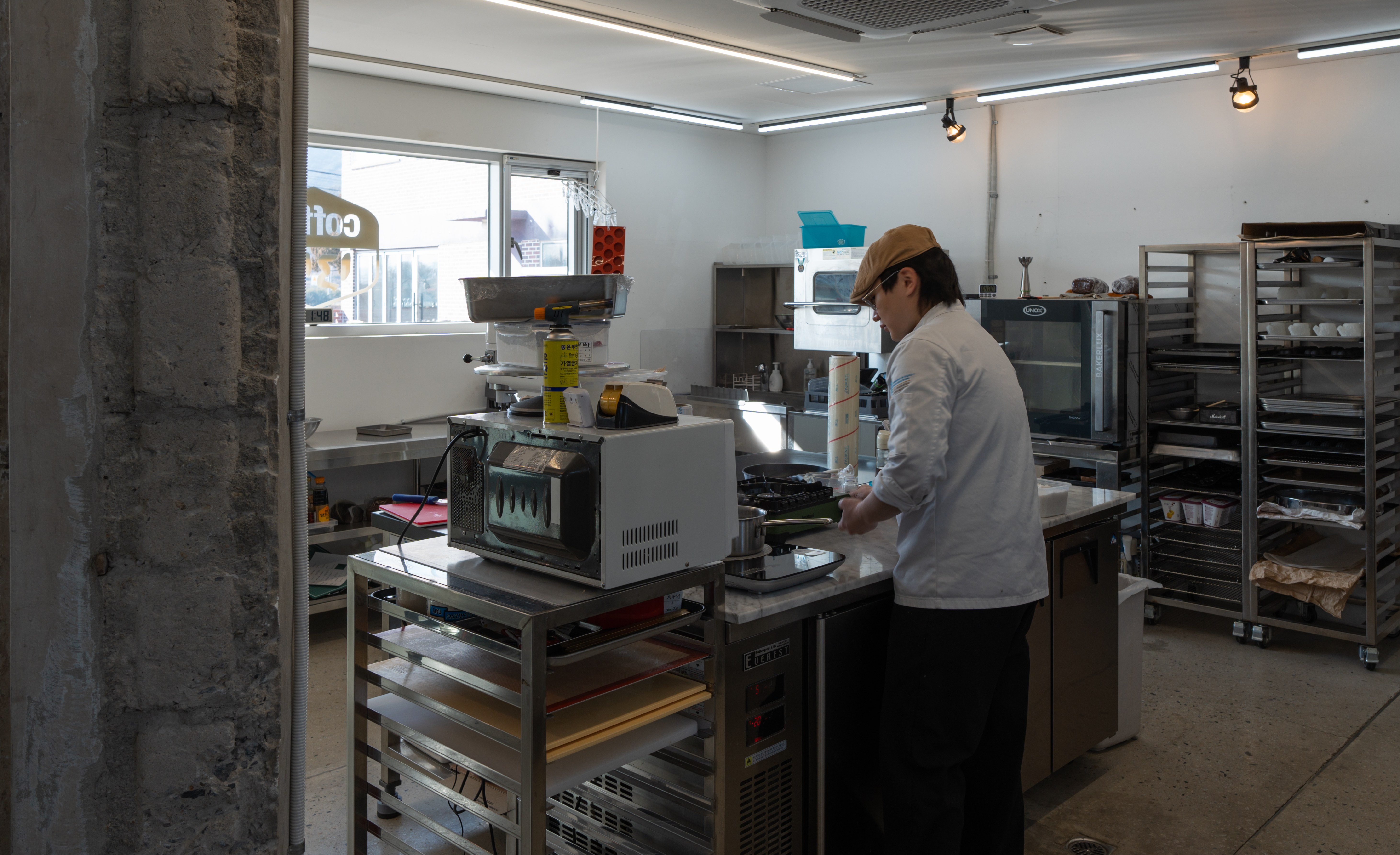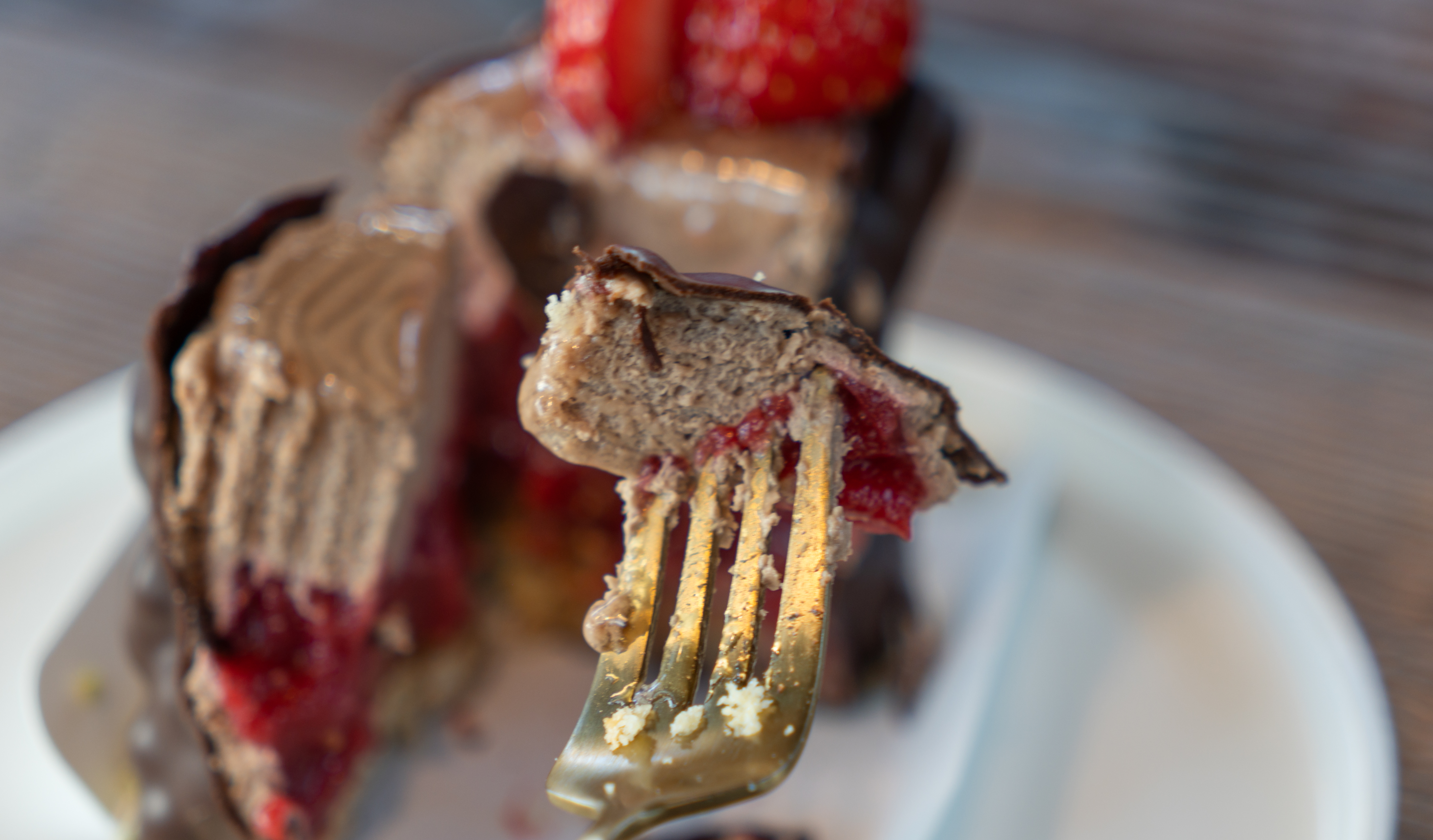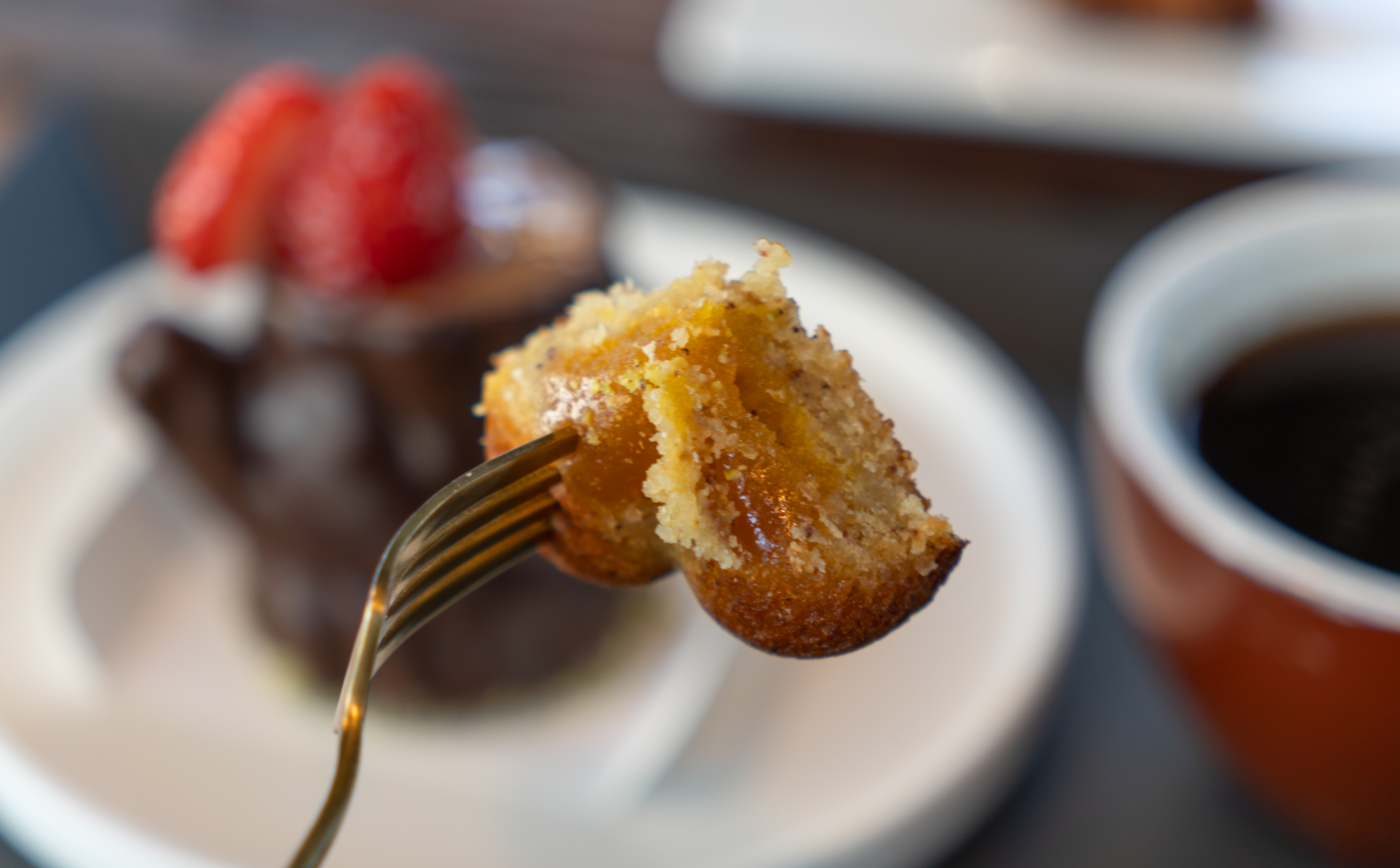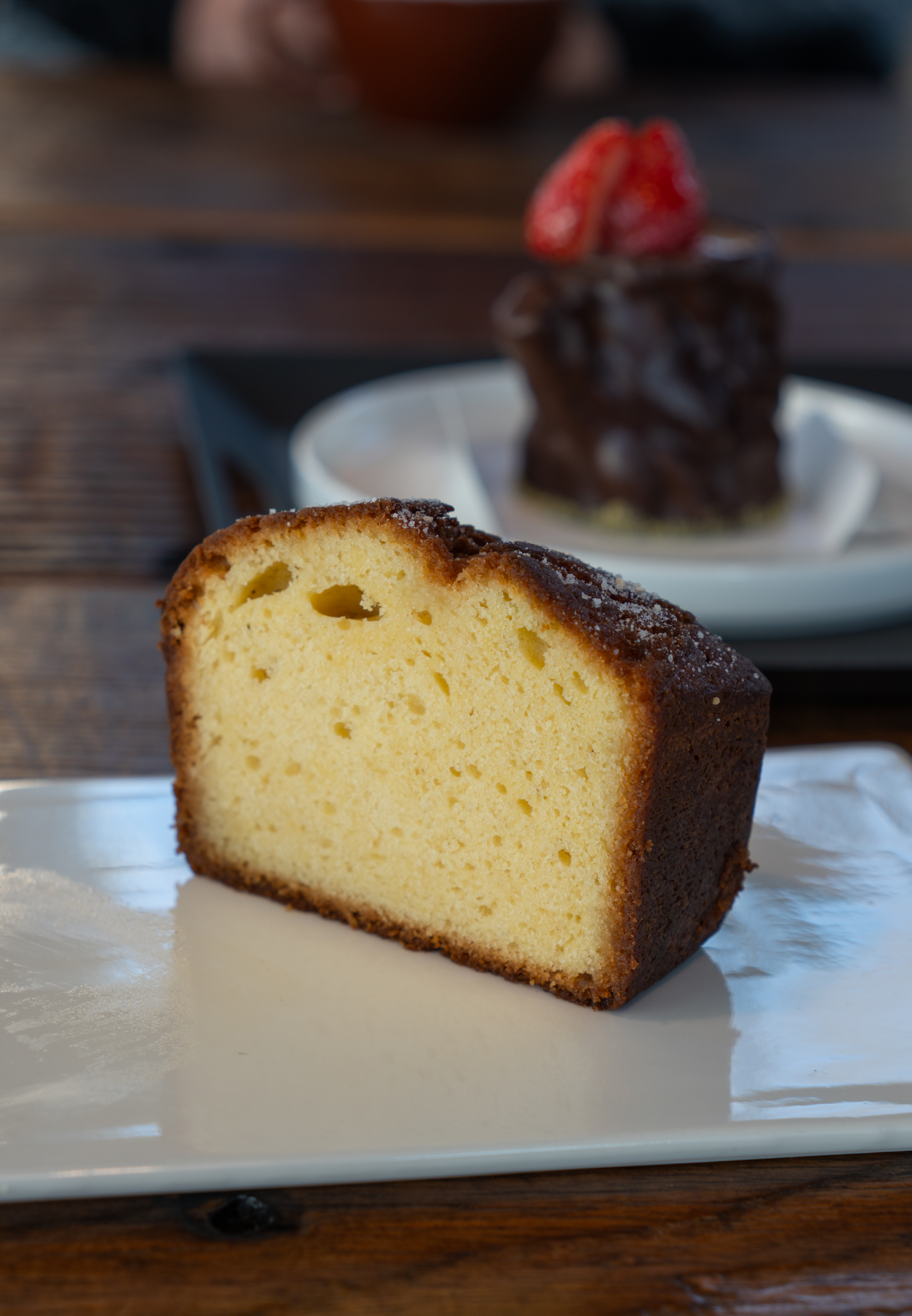 시그니처 메뉴 딸기나무와 피스타치오 오렌지 휘낭시에 그리고 레몬 케이크의 모습입니다. 상큼한 맛의 레몬케이크에 꾸덕한 식감(?)이 있는 피스타치오 오렌지 휘낭시에도 인상적이었지만, 사실 저는 이곳에 방문하기 전 딸기나무가 가장 궁금했었는데, 딸기나무는 부드러운 밀크초콜릿 무스에 상큼한 딸기소스의 조화가 이루어지는 메뉴라고 합니다.