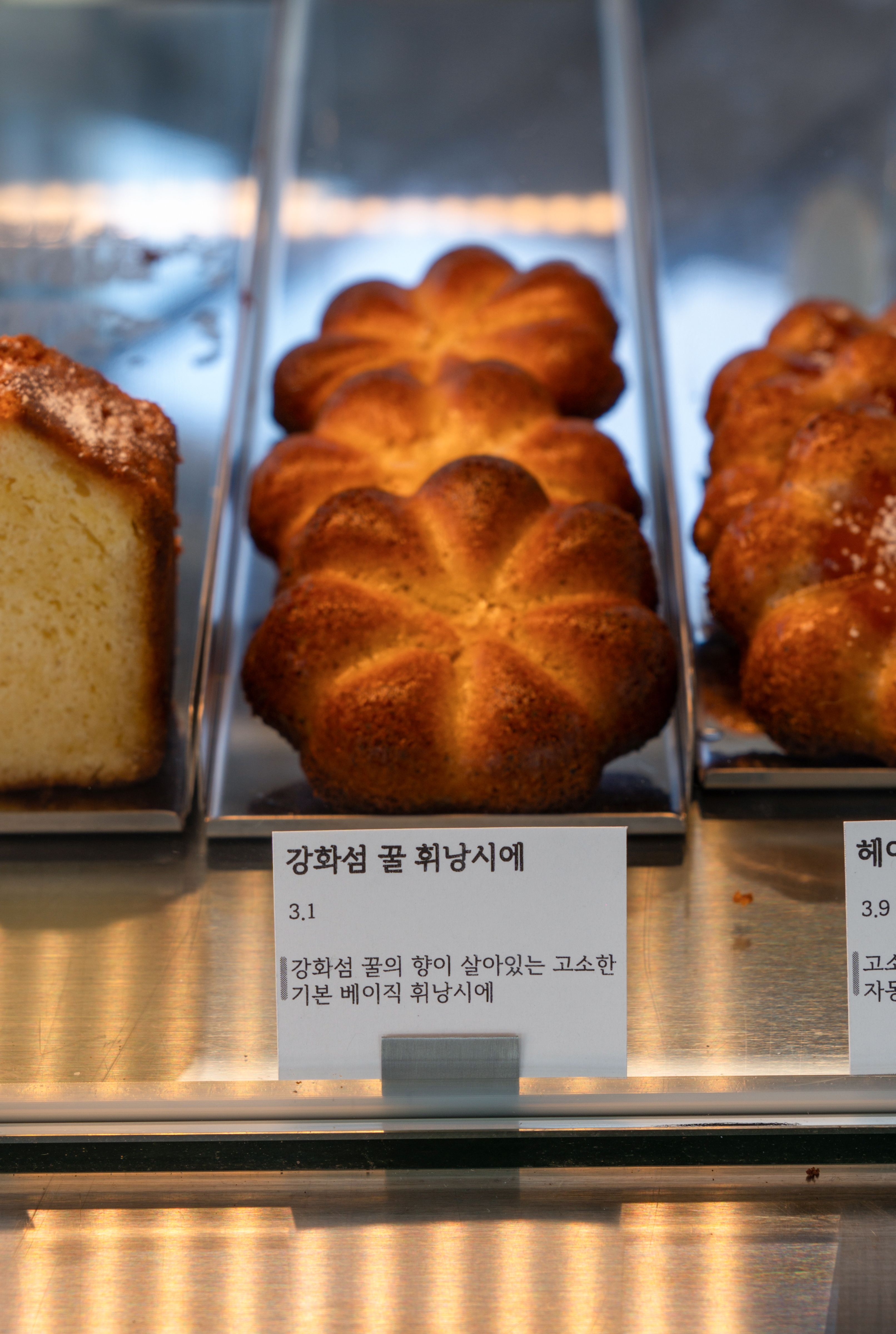 강화도 1318커피의 디저트들은 전체적으로 과일을 활용한 디저트류가 많았습니다. 딸기나무, 레몬케이크, 오렌지휘낭시에 등. 하지만 저는 단 디저트를 즐기지 않아서 제 기준엔 좀 많이 달더라고요. 향이나 맛도 자연스럽게 음료와 페어링 된다는 느낌이면 좋겠는데, 살짝 진했다고 느껴졌습니다. 물론, 제가 전문가도 아니고, 디저트에 대해 좋아하거나 즐기지를 않다 보니...(ㅠㅠ)